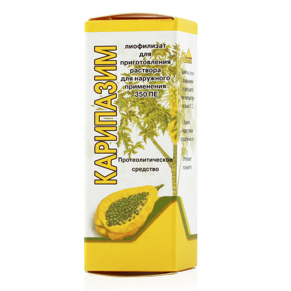 Выраженные лечебные свойства Карипазима обусловлены фармакологическими эффектами его основного вещества. Папаин является ферментом, для которого характерна высокая регенерирующая активность в отношении тканей и органов практически всех систем жизнедеятельности. Но действие папаина избирательное, направленное только на поврежденные соединительнотканные структуры. Им запускаются и катализируются сложные биохимические реакции, в ходе которых разрушенные ткани выводятся из организма, а на их месте начинают формироваться молодые клетки. Карипазим оказывает комплексное воздействие поврежденные органы: