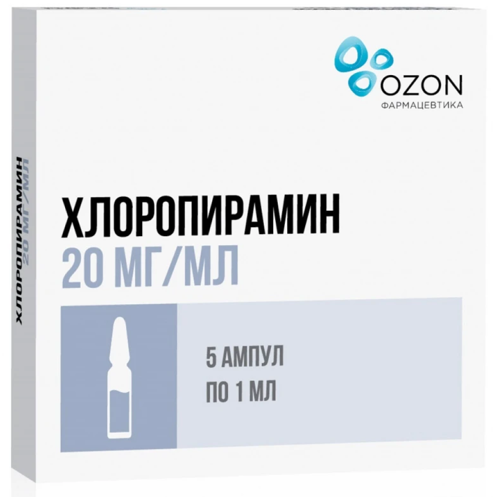 Хлоропирамин 20 мг/мл 1 мл 5 шт раствор для внутривенного и внутримышечного введения ампулы