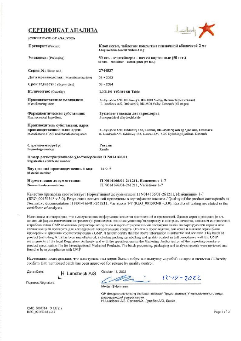 Действие Зуклопентиксола деканоат (депо) сохраняется от двух до четырех недель.