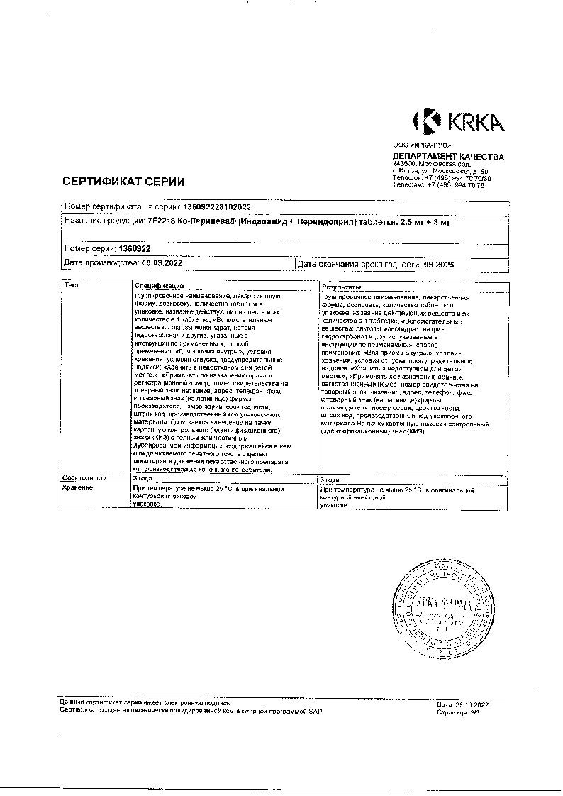 Содержание периндоприла в Ко-Дальнева (2,5 мг, 0,625 или 1,25 мг) не меняет его фармакологические свойства. При употреблении разовой дозировки внутрь гипотензивный эффект наступает быстро (максимальный эффект фиксируется спустя 4-6 часов). Не меняется в течение суток, после чего держится на уровне 87%-100% от максимума. При этом уровень плазменной концентрации ренина (низкий или высокий) не имеет значения. Активным является не сам главный компонент, который представляет собой пролекарство, а периндоприлат (его метаболит). Он вызывает понижение артериального давления (диастолического и систолического, как в положении стоя, так и лежа) и результативен при любой артериальной гипертензии (вне зависимости от степени тяжести).