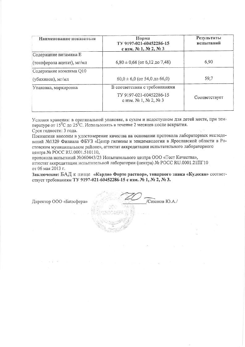 Активный компонент Кудесана не только синтезируется в клетках, но и поступает с продуктами питания. Чем старше человек, тем выше его потребность в убихиноне, поэтому даже при тщательно скорректированном рационе возникает его дефицит. Восполнить запасы поможет использование Кудесана в виде раствора.