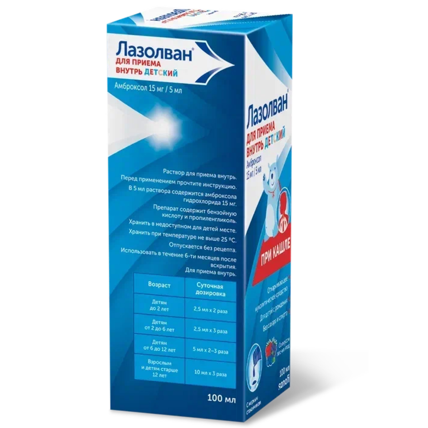 Немецкие, итальянские, французские производители выпускают Лазолван в различных лекарственных формах. Особенно востребован он в виде плоских белых или желтоватых таблеток. А у родителей маленьких детей большой популярностью пользуется прозрачный сироп с приятным запахом и сладким вкусом. Таблетки расфасованы в блистеры из металлизированной фольги, сироп — во флаконы из темного стекла с завинчивающимся колпачком. Вторичной упаковкой служит картонная коробка, внутри которой находится инструкция по применению.