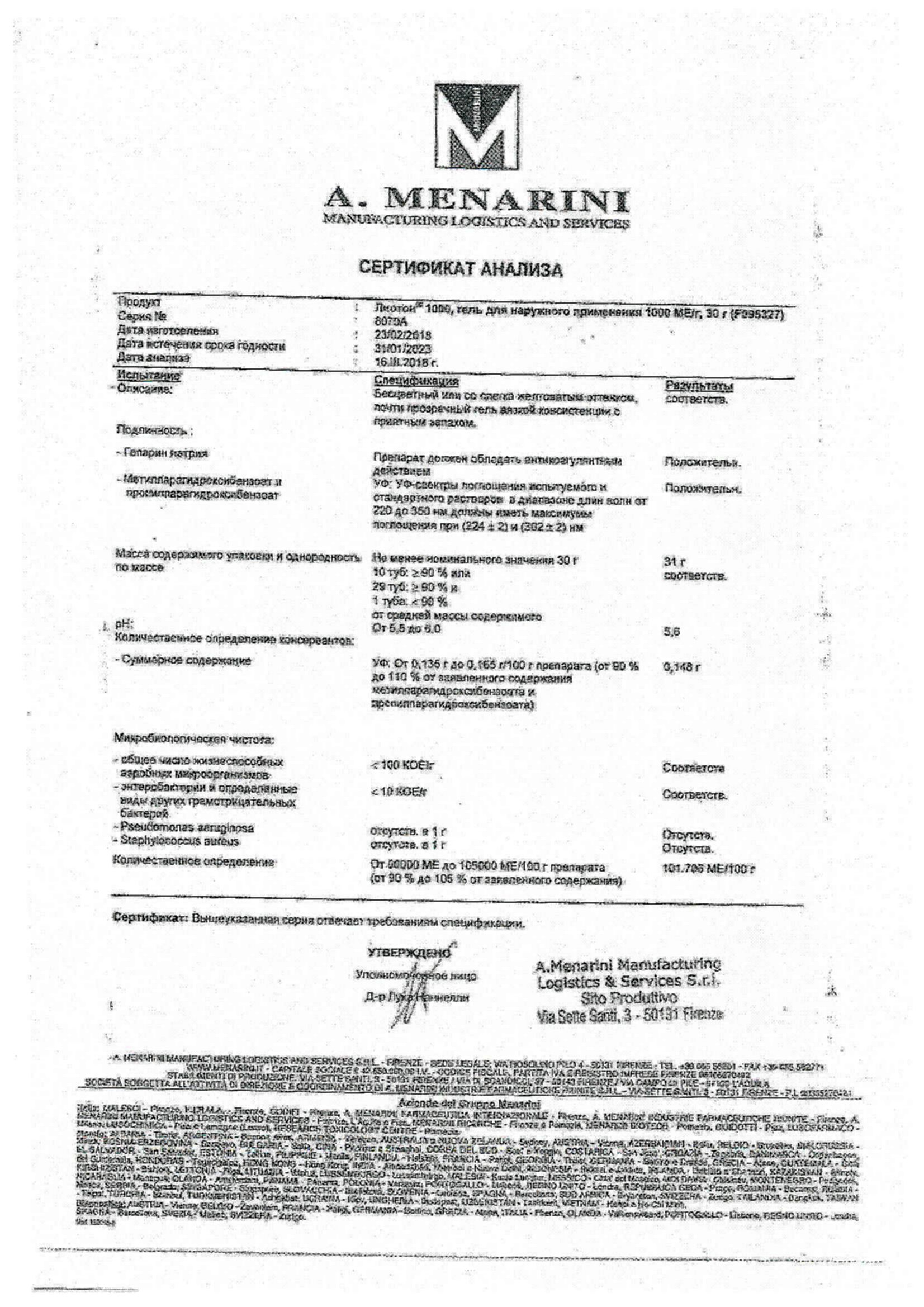 Гепарин натрияСогласно инструкции к Лиотон 1000 гель, его принимают 1-3 раза в сутки. На пораженный участок тела наносят небольшое количество препарата и втирают его в кожу массирующими движениями. Длительность приема зависит от тяжести заболевания и определяется врачом с учетом индивидуального состояния больного.
