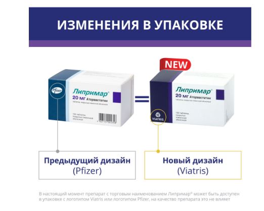 Производством Липримара занимается американская фармацевтическая компания Пфайзер. Она выпускает препарат в одной лекарственной форме — в виде двояковыпуклых таблеток с кишечнорастворимой оболочкой, помещенных в ячейки металлизированных блистеров. Вторичная упаковка — картонная коробка с логотипом фармкомпании и инструкцией по применению.