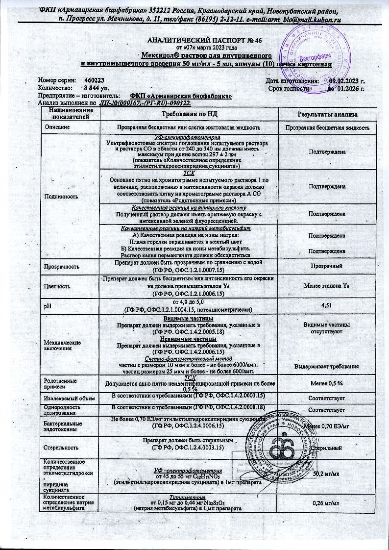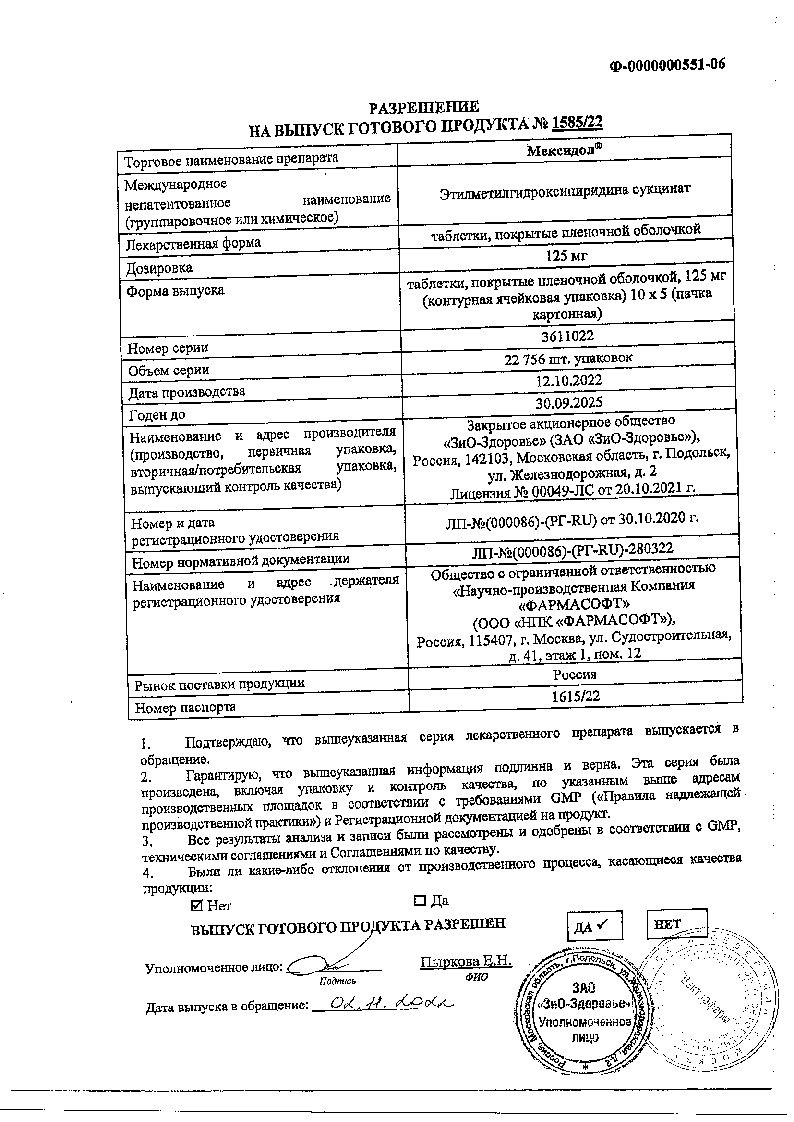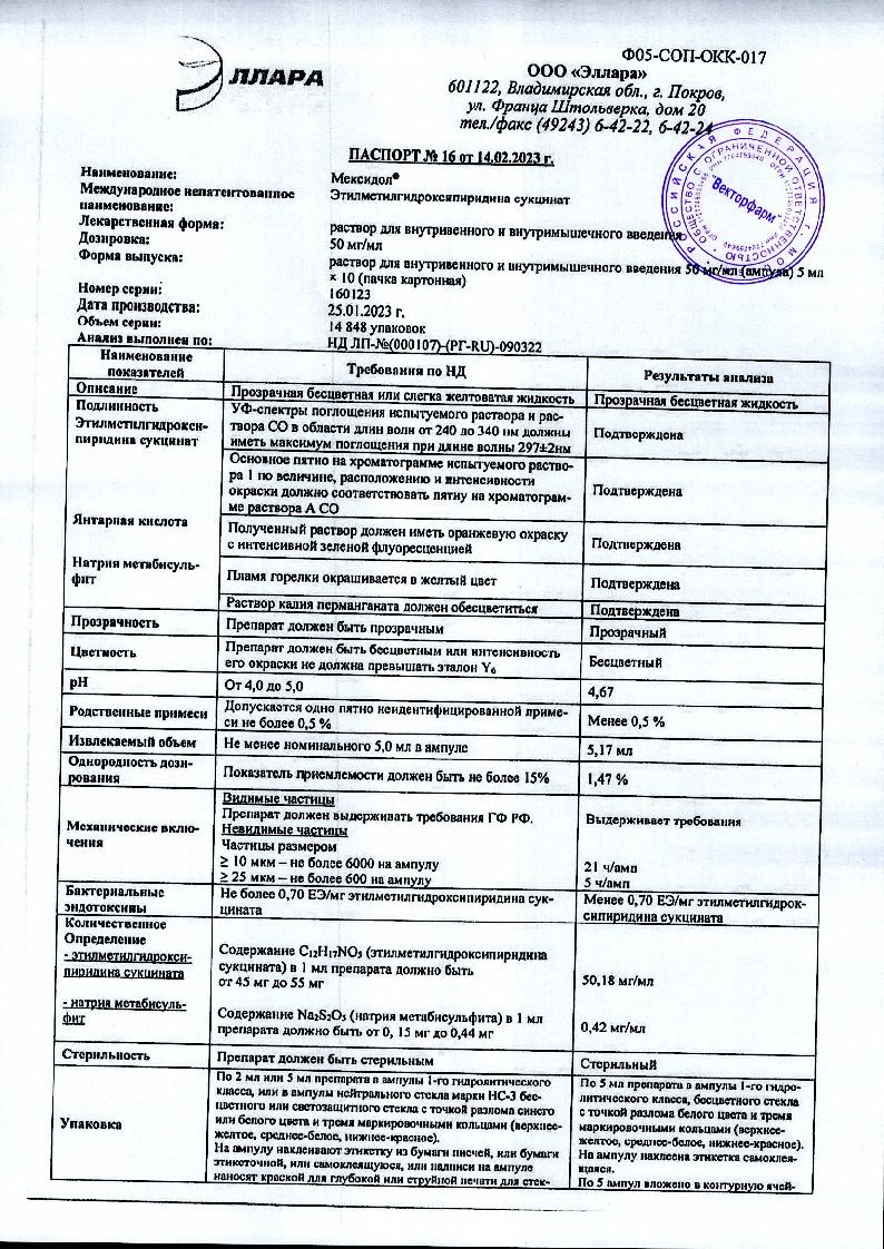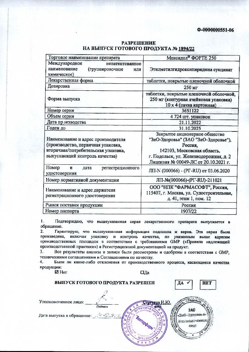 Основной активный компонент данного лекарства — сукцинат этилметилгидроксипиридина в дозировке 50 мг в растворе и 125 мг или 250 мг в таблетках.