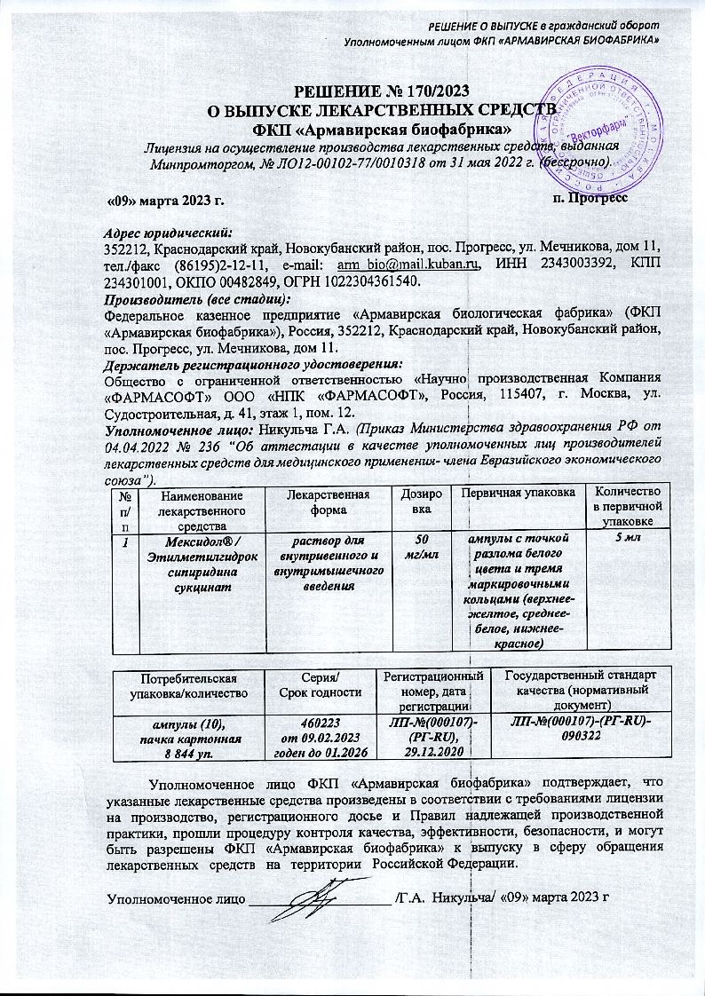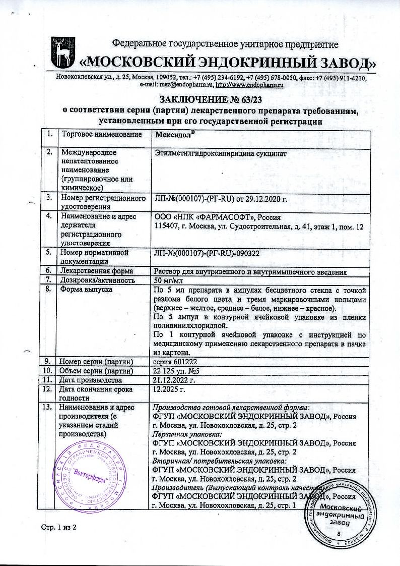 Мексидол выпускается в двух формах: