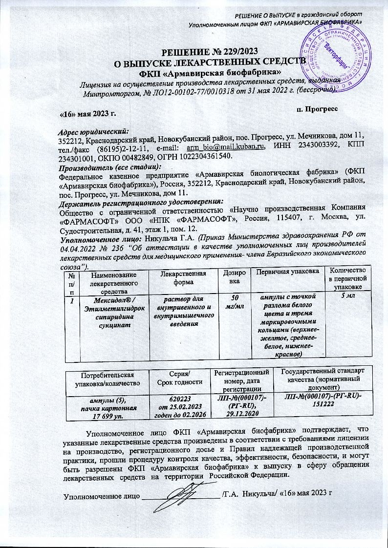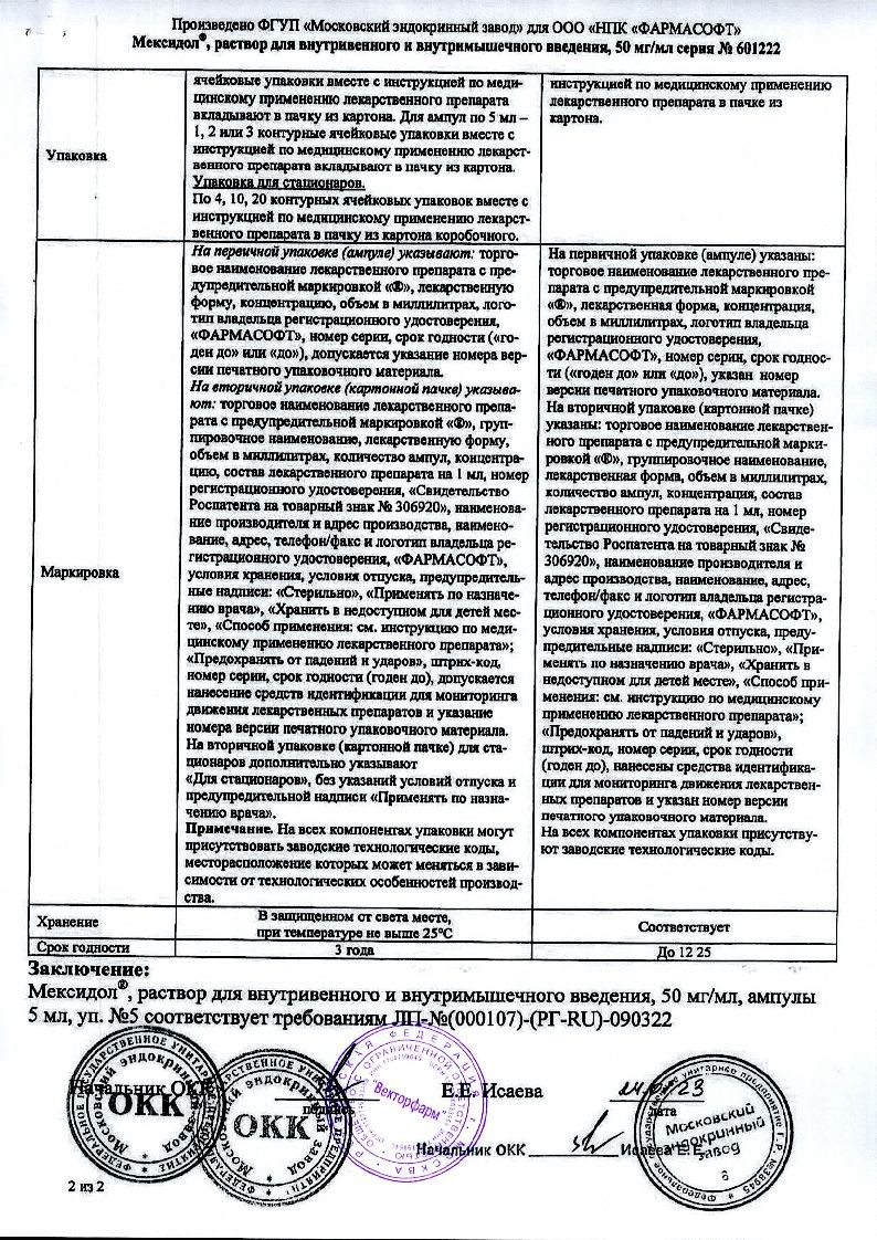 Расщепляется Мексидол в печени, а выводится из организма вместе с мочой в виде метаболитов, особенно активно в первые 4 часа после применения. Период полувыведения составляет 2-2,5 часа.