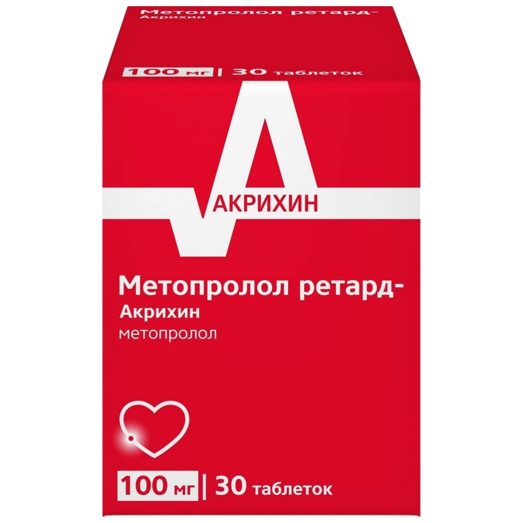 Метопролол Ретард-Акрихин 100 мг 30 шт таблетки пролонгированного действия, покрытые пленочной оболочкой