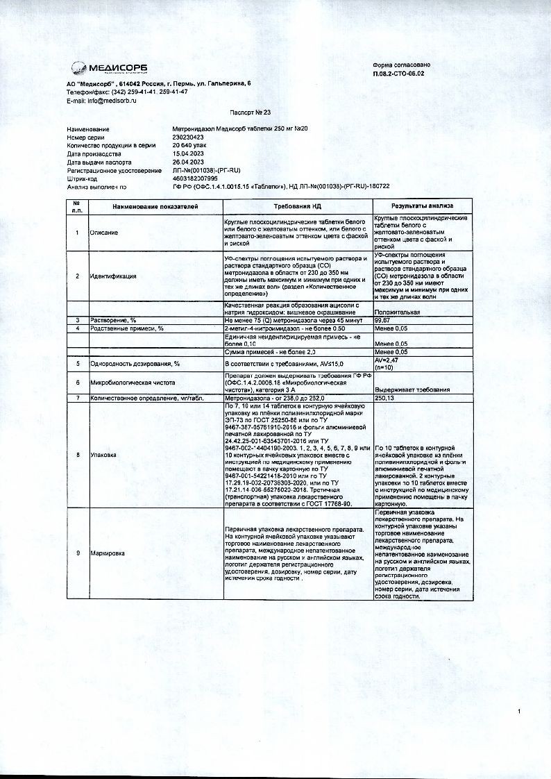 Метронидазол обладает высокой проникающей способностью. Абсорбция составляет около 80%. Спустя 1-3 часа после приема отмечается максимальное количество в плазме крови. В организме расщепляется способом глюкуронирования и гидроксилирования до метаболита – 2- оксо метронидазола, который оказывает основное терапевтическое действие. При нормальной функциональной способности печени выводится в течение 8-10 часов. Почками элиминируется 60-70%, кишечником до 15%.