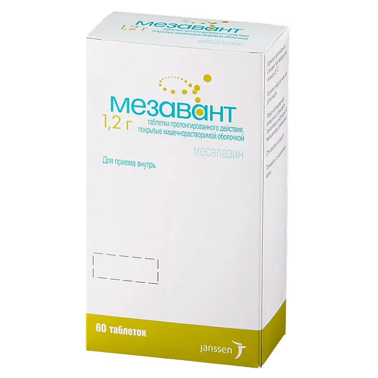 Мезавант 1,2 г 60 шт таблетки кишечнорастворимые с пролонгированным высвобождением покрытые пленочной оболочкой