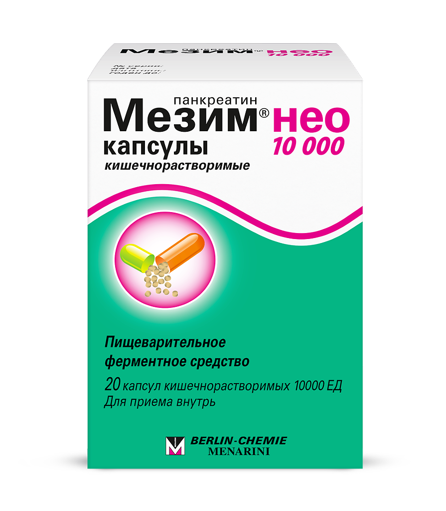 Мезим Нео 10000 капсулы кишечнорастворимые №20