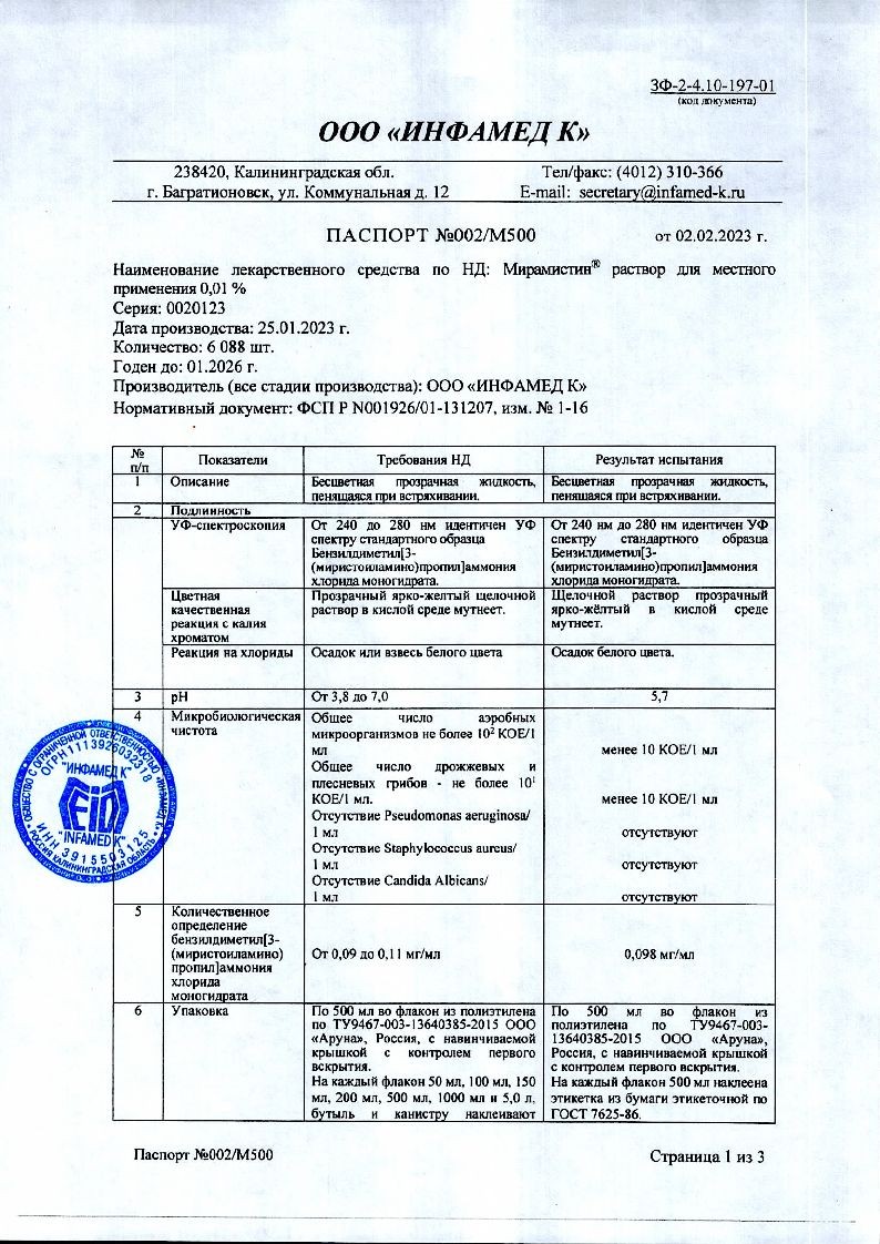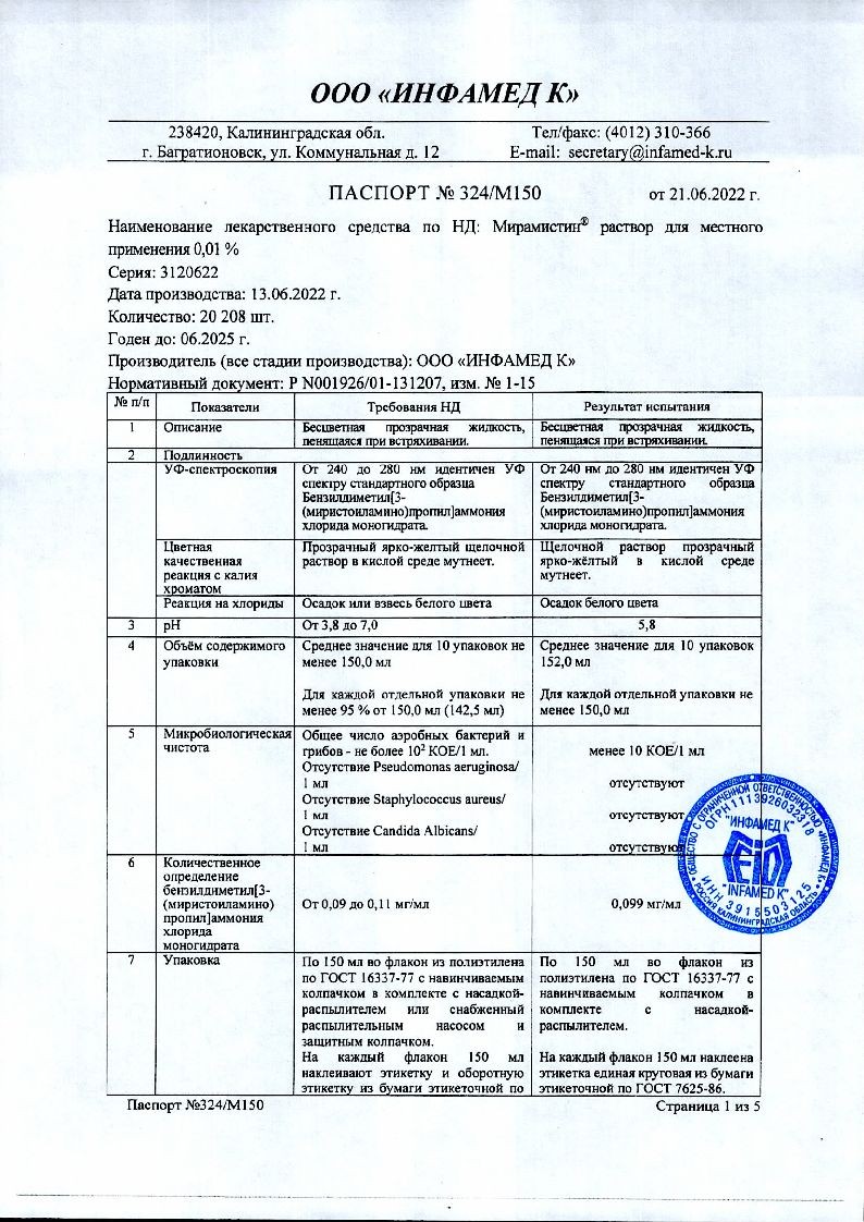 Мирамистин выпускается отечественным производителем ООО "Инфамед К". Это прозрачный раствор без посторонних включений, быстро впитывающийся в поврежденную кожу. Он расфасован в пластиковые флаконы с навинчивающимся колпачком. В картонную коробку также вложена подробная инструкция по применению и специальная насадка для удобного дозирования препарата. Относительно недавно в продаже появилась и одноименная мазь, прозрачная, вязкая, с легким желтоватым оттенком и специфическим запахом.