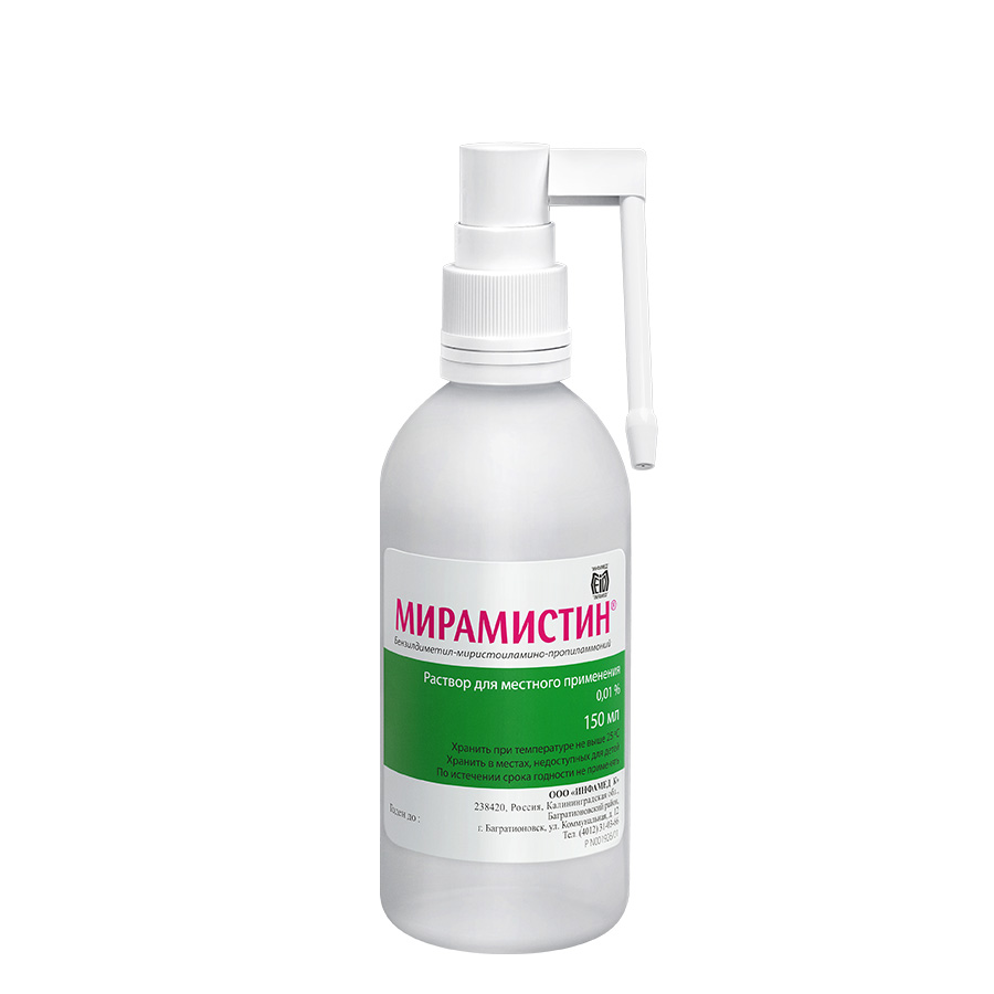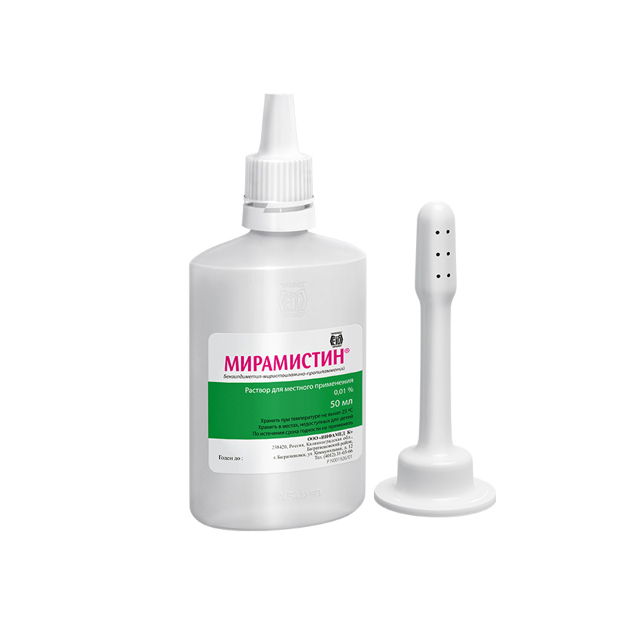 Мирамистин хорошо сочетается со всеми лекарствами, которые используются в терапии дерматологических, респираторных, урогенитальных инфекций, поражений слуховых и носовых проходов. Его можно комбинировать с другими антисептиками. Нежелательного лекарственного взаимодействия в клинической практике не было выявлено.