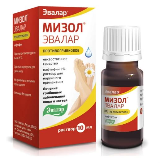 В 1 мл Мизола содержится 10 мг активного вещества – нафтифина гидрохлорида. В качестве вспомогательных компонентов применяются: