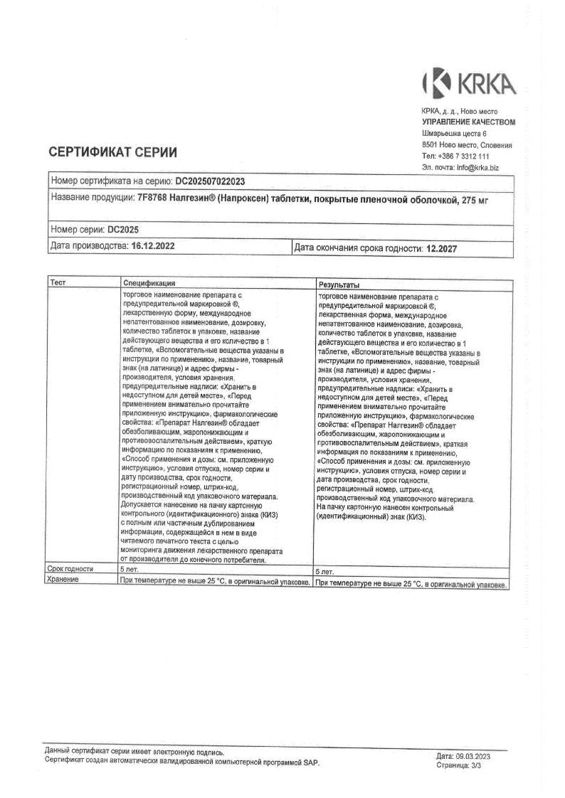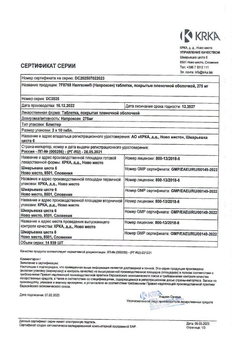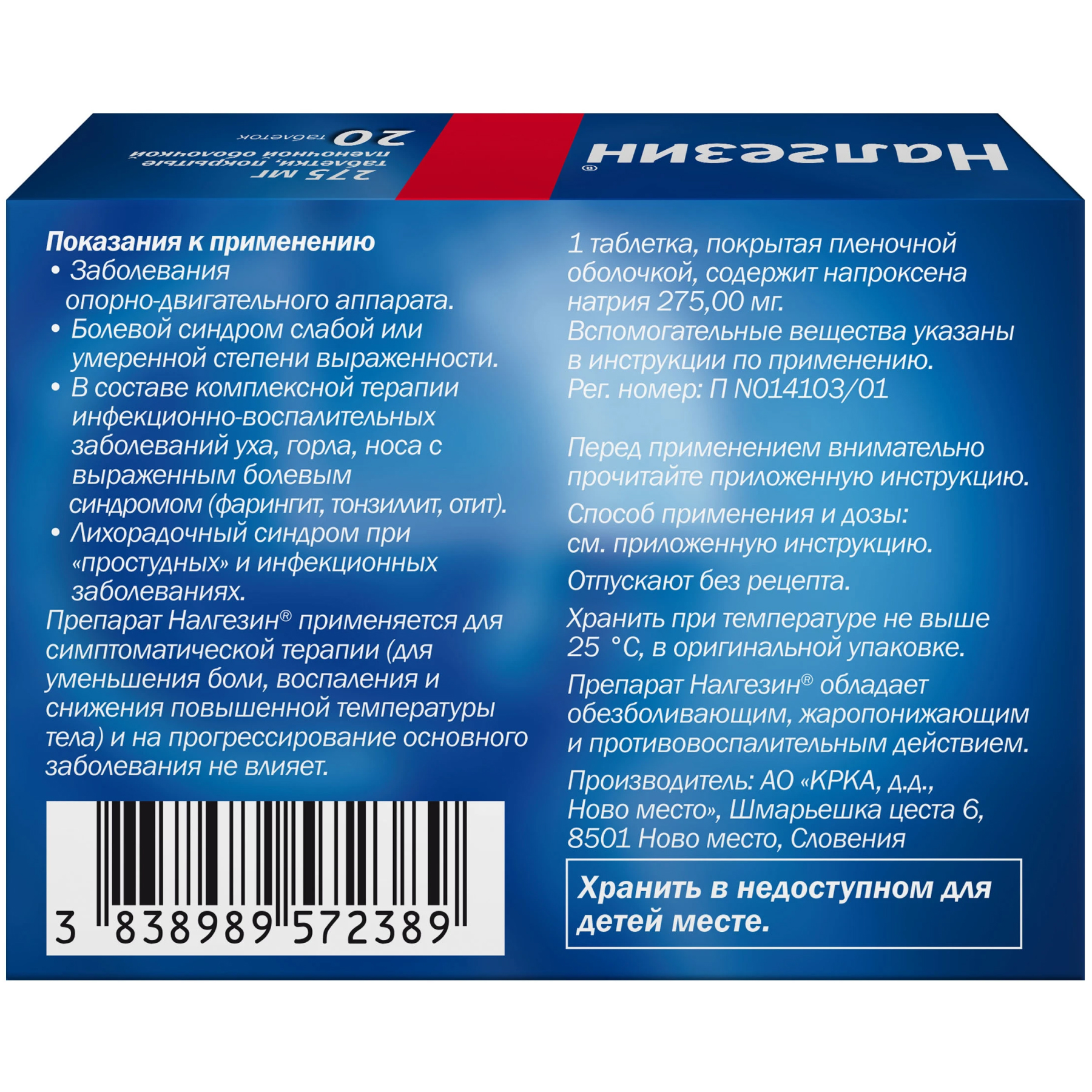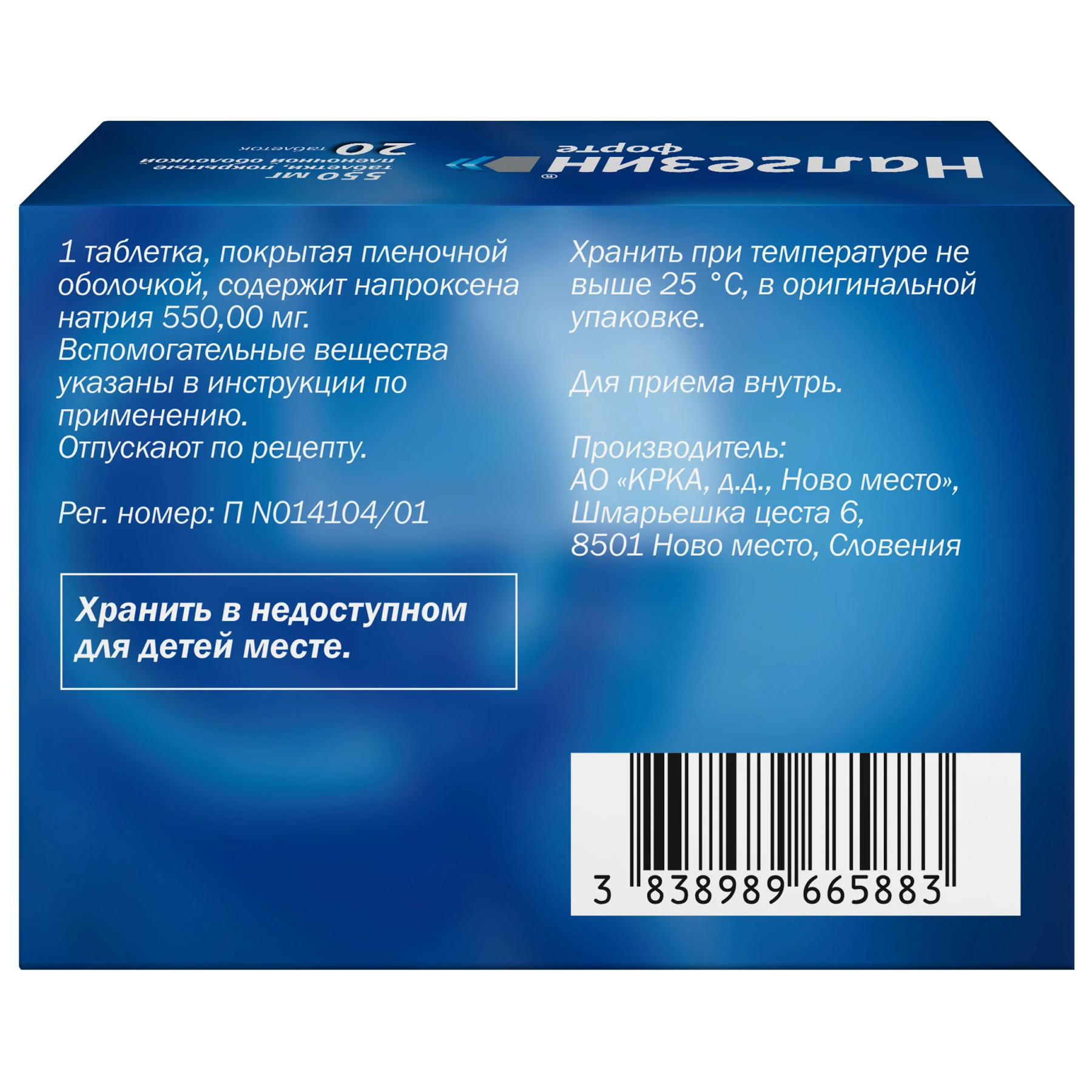 В одной таблетки содержится действующее вещество напроксен натрия в дозировке 550,00 мг.