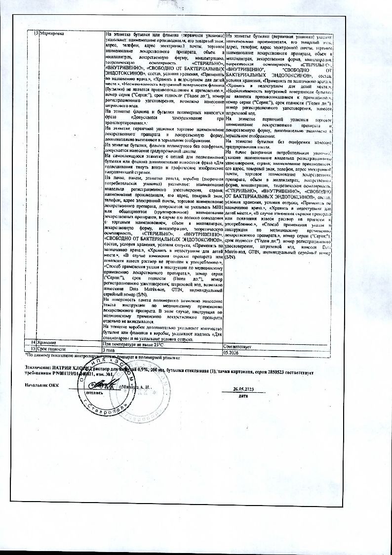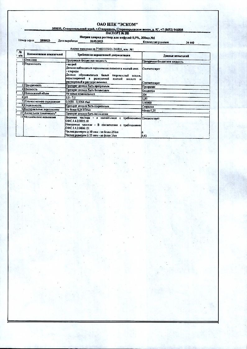 Натрия Хлорид р-р д/инф 0,9% 200мл №28