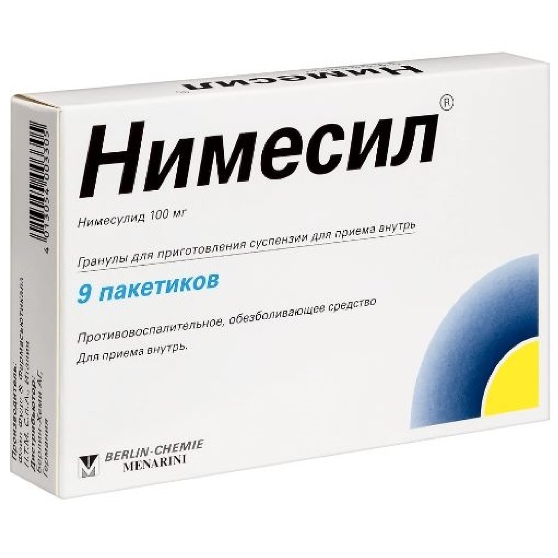 Нимесил относится к категории нестероидных лекарственных средств с противовоспалительными свойствами. Эффективно справляется с типичными признаками воспаления. Обладает анальгезирующим свойствами. Быстро снимает болевые ощущения. Его можно использовать для ситуационного снятия боли или принимать курсом. В Москве и в аптеках разных регионов РФ продается в пакетиках. В них содержатся зернистые гранулы светло-желтого цвета с приятным запахом апельсина. Их растворяют в воде. Так самостоятельно готовят суспензию, которую принимают внутрь.
