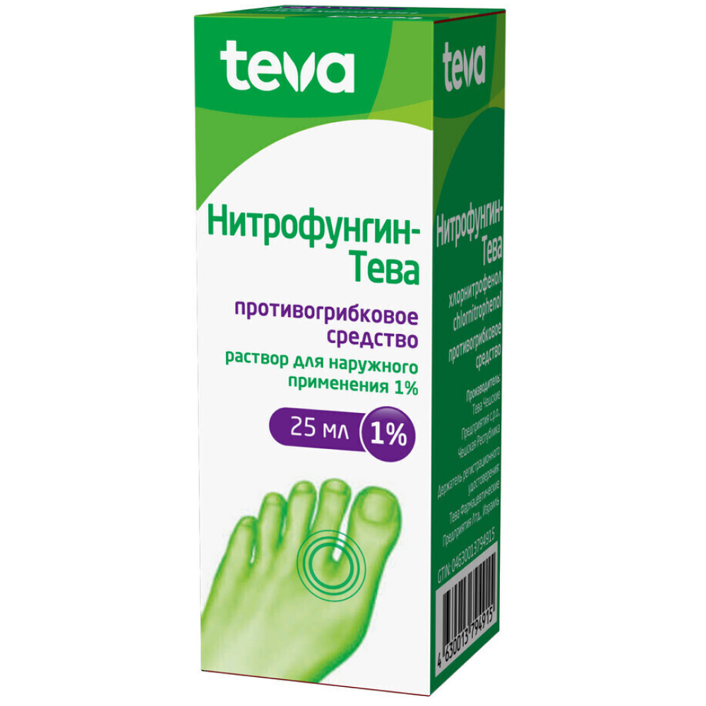 ХлорнитрофенолИзраильская фармацевтическая компания Тева выпускает препарат в виде вязкой прозрачной с желтоватым оттенком жидкости без посторонних включений. От нее исходит выраженный специфический спиртовой запах. Раствор расфасован во флаконы из темного стекла, в верхней части которых есть приспособления для удобного отмеривания Нитрофунгина. Они находятся в картонных коробках вместе с подробными инструкциями по применению.