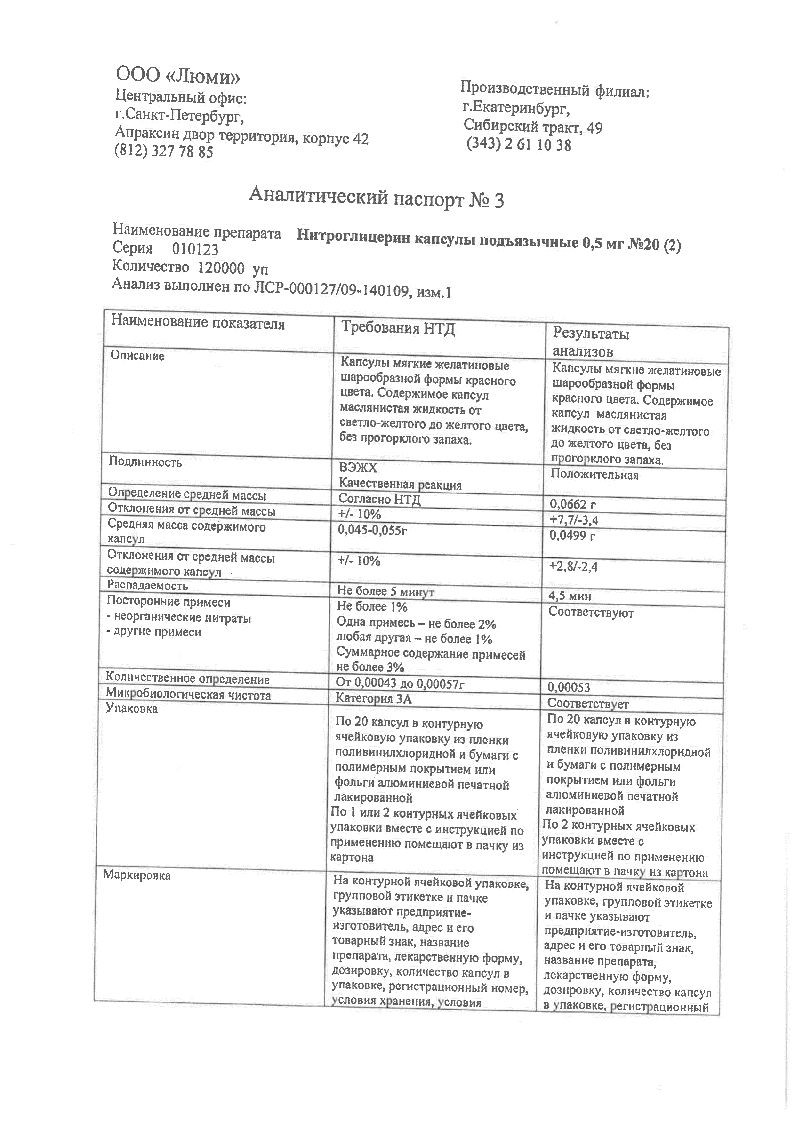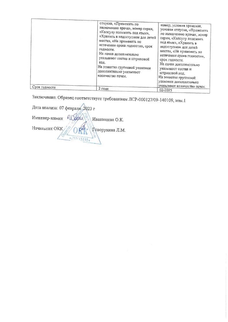 - плоскоцилиндрических округлых таблеток и подъязычных капсул белого либо почти белого цвета 0.5 мг;