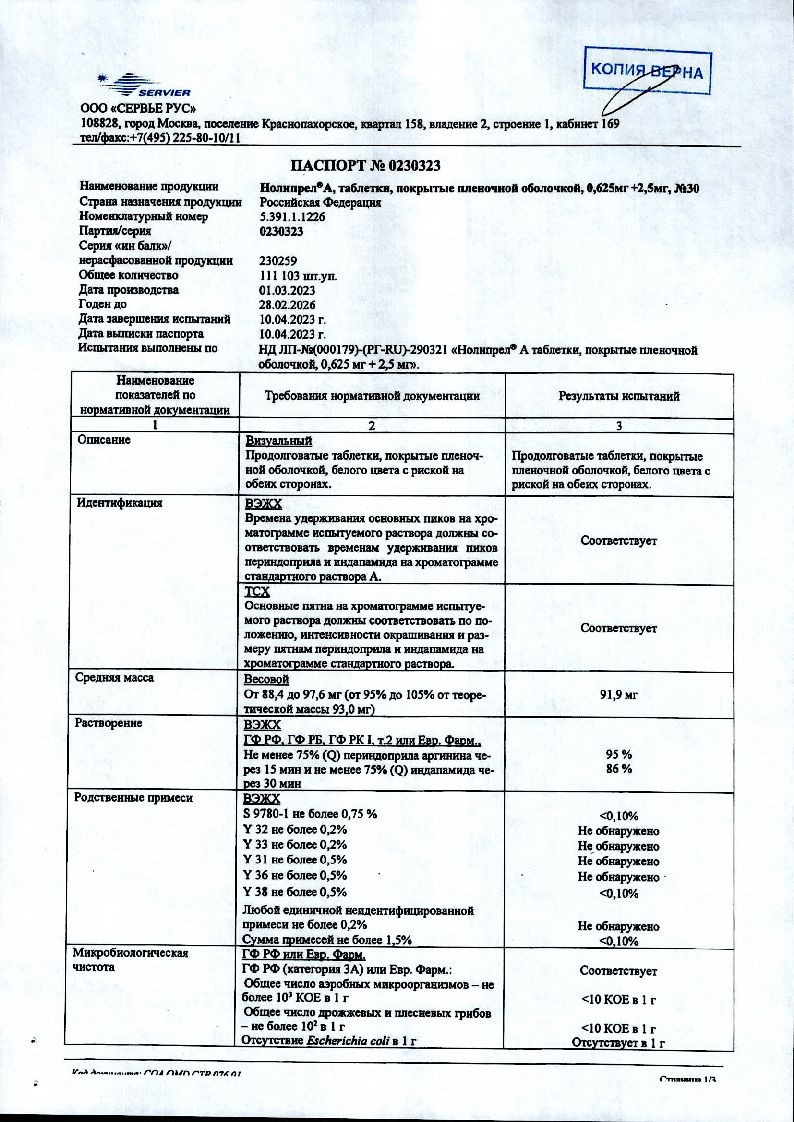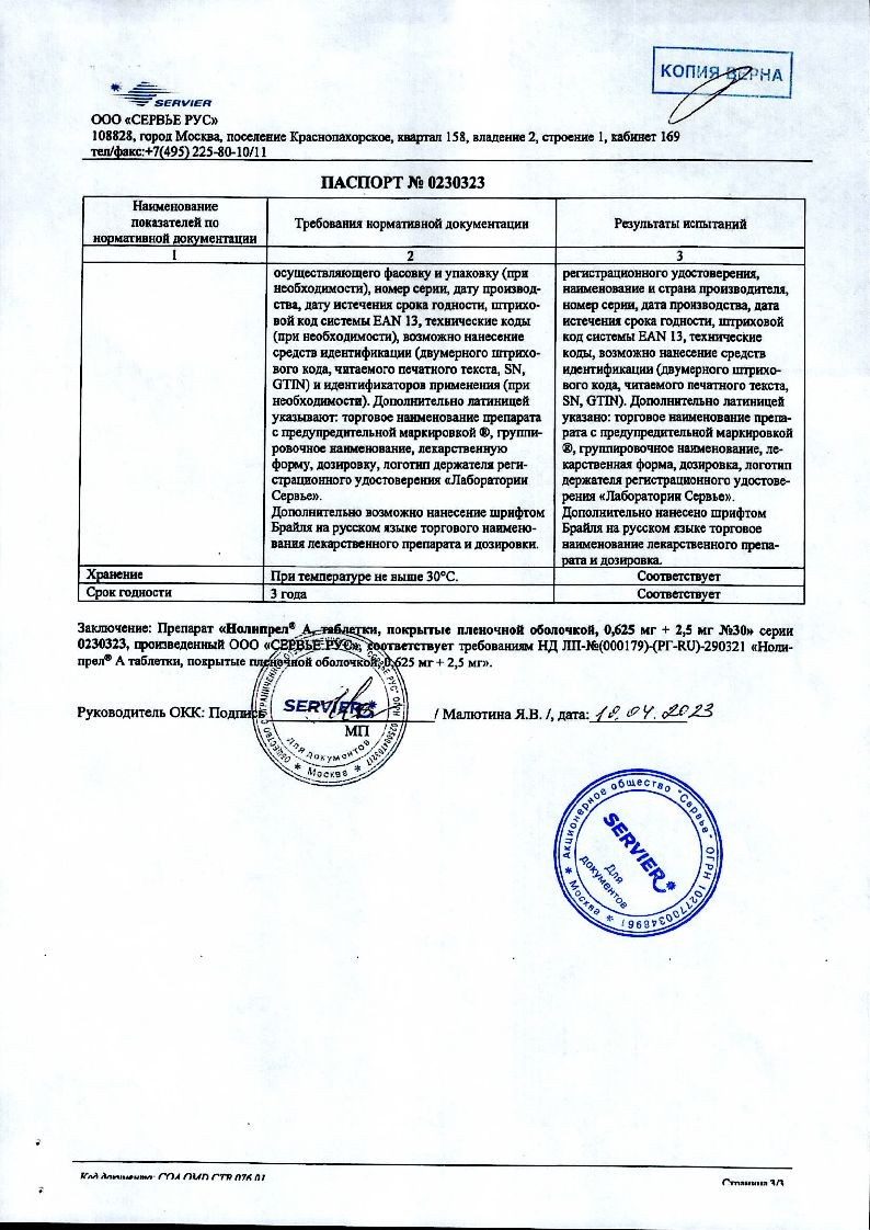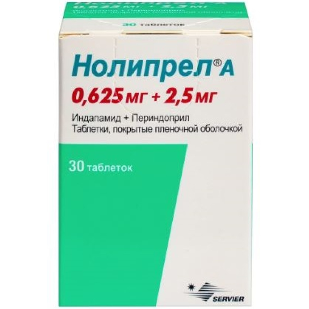 Нолипрел А 0,625 мг + 2,5 мг 30 шт таблетки покрытые пленочной оболочкой