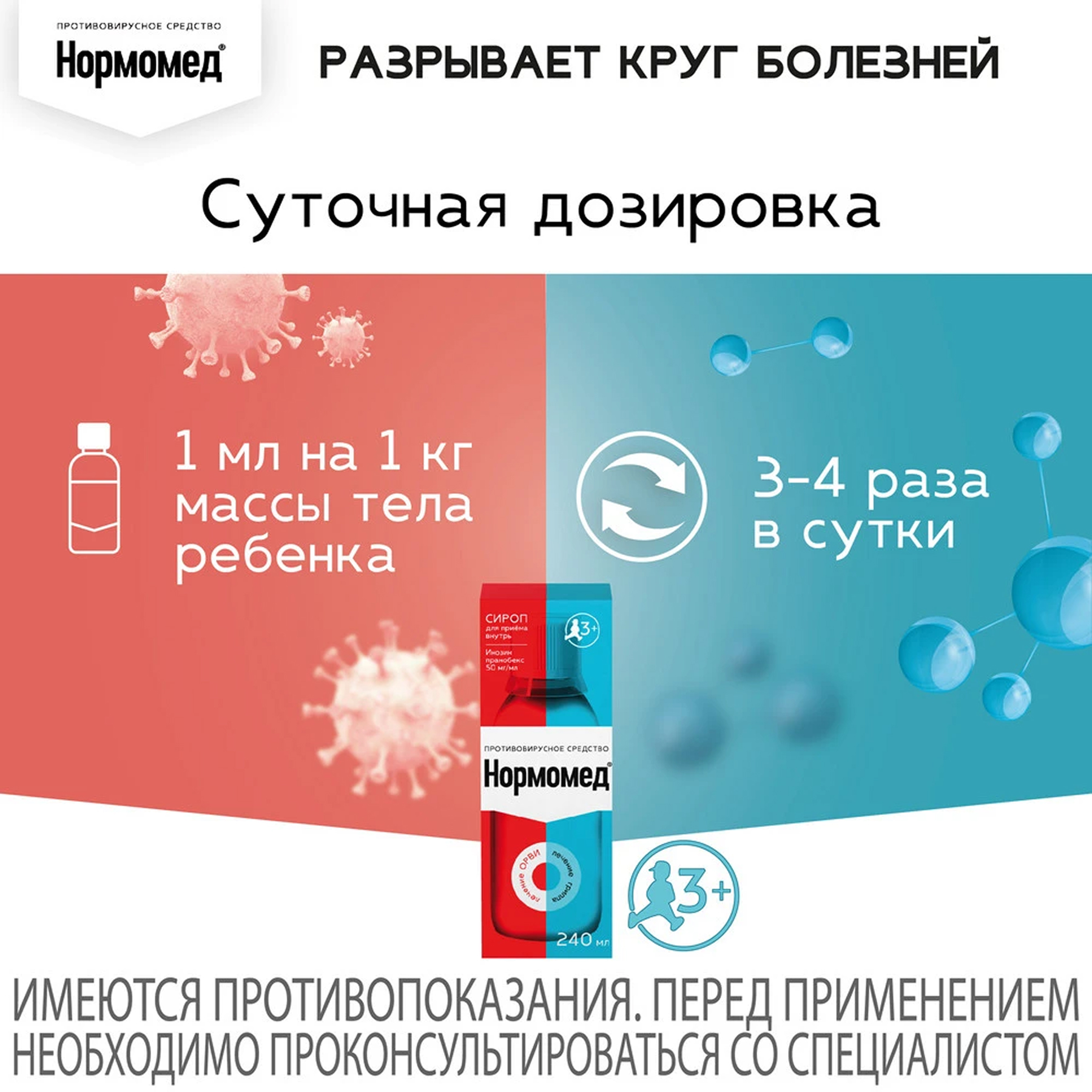 Противопоказан Нормомед в детском возрасте до трех лет и весе ребенка до 15-20 кг.