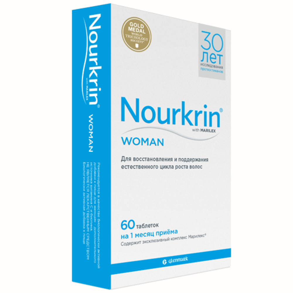 Фармакологические свойства и эффективность таблеток Нуркрин объясняется составом. В комплексе Марилекс® содержатся протеогликаны. От их количества зависит морфогенез волосяного фолликула и факторы роста. При их дефиците происходят нарушения в сигнальном пути, который моделирует все процессы, связанные с развитием и поддержанием нормальной работы волосяных фолликулов.