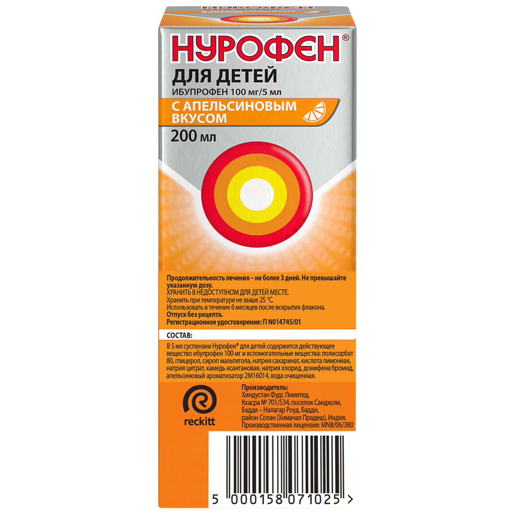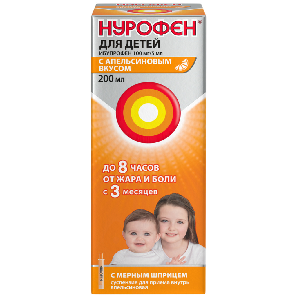 Нурофен суспензия для приема внутрь для детей с 3 месяцев 100мг/5мл 200мл апельсин