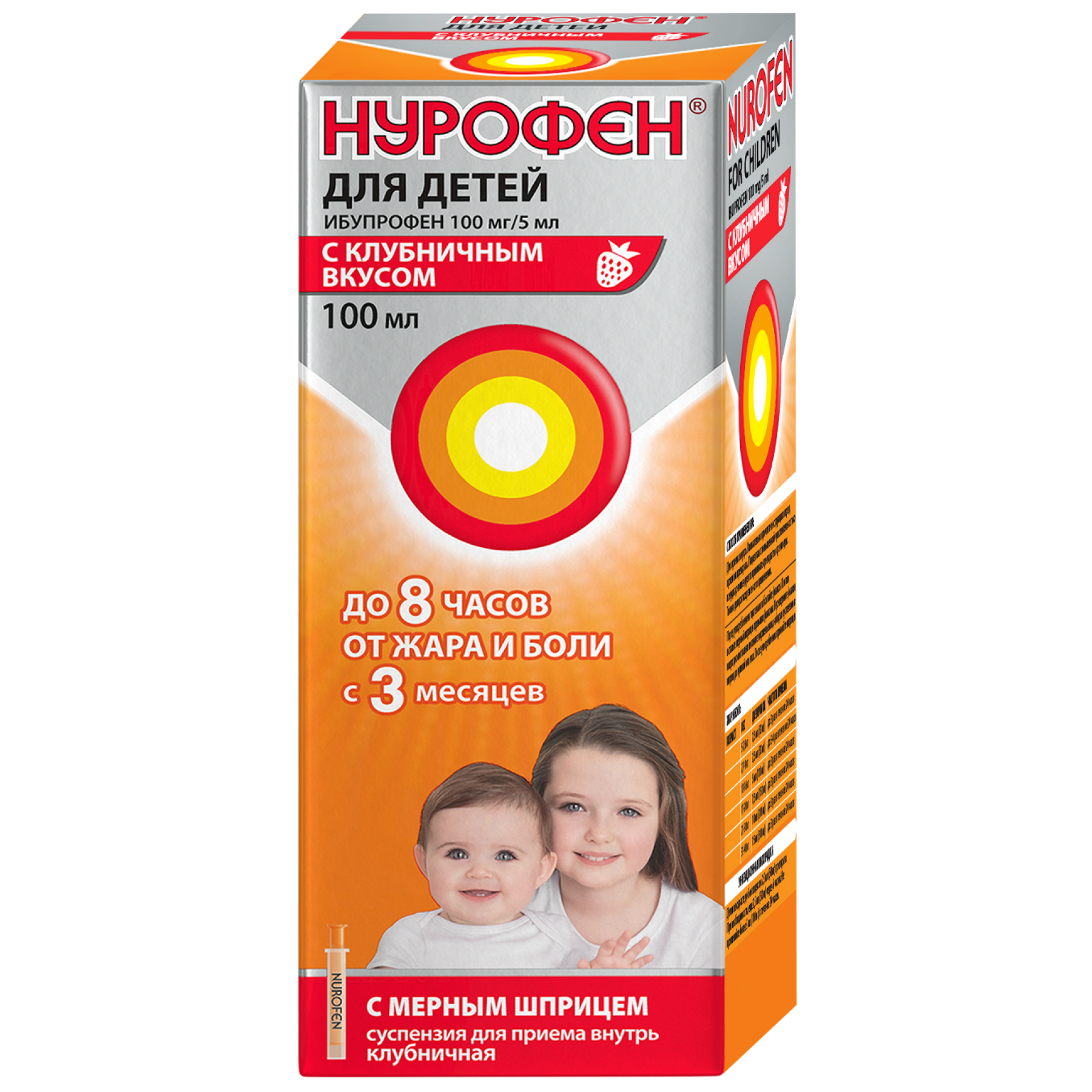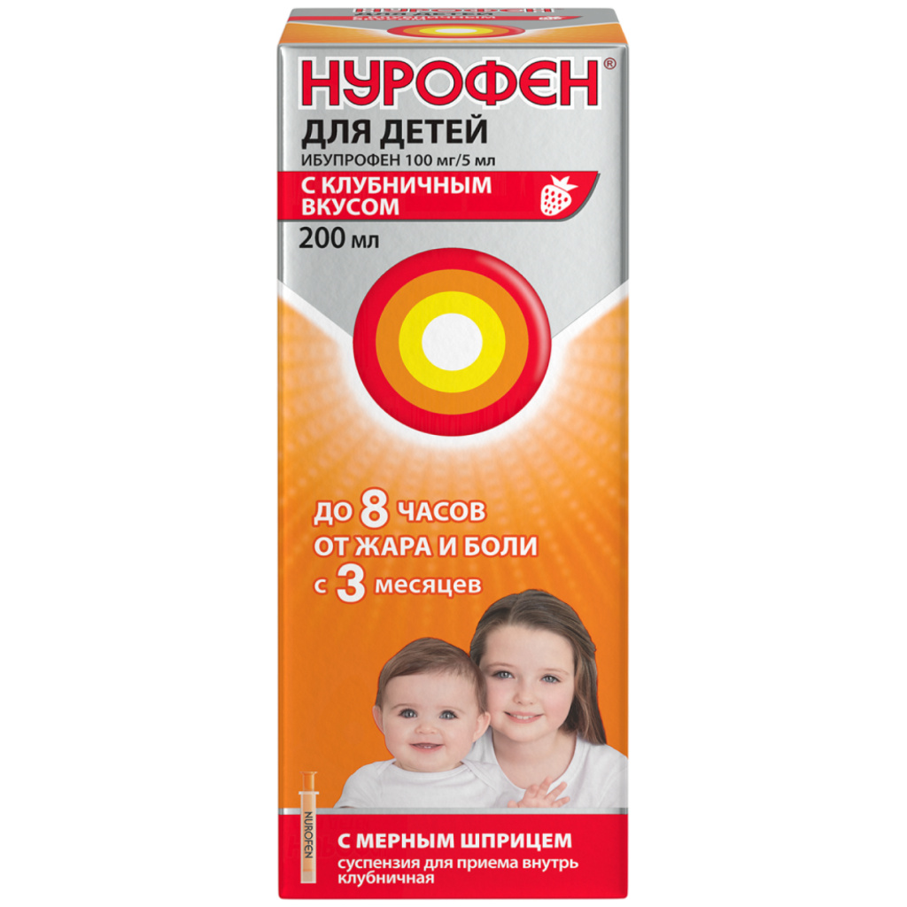 Нурофен суспензия для приема внутрь для детей с 3 месяцев 100мг/5мл 200мл клубника