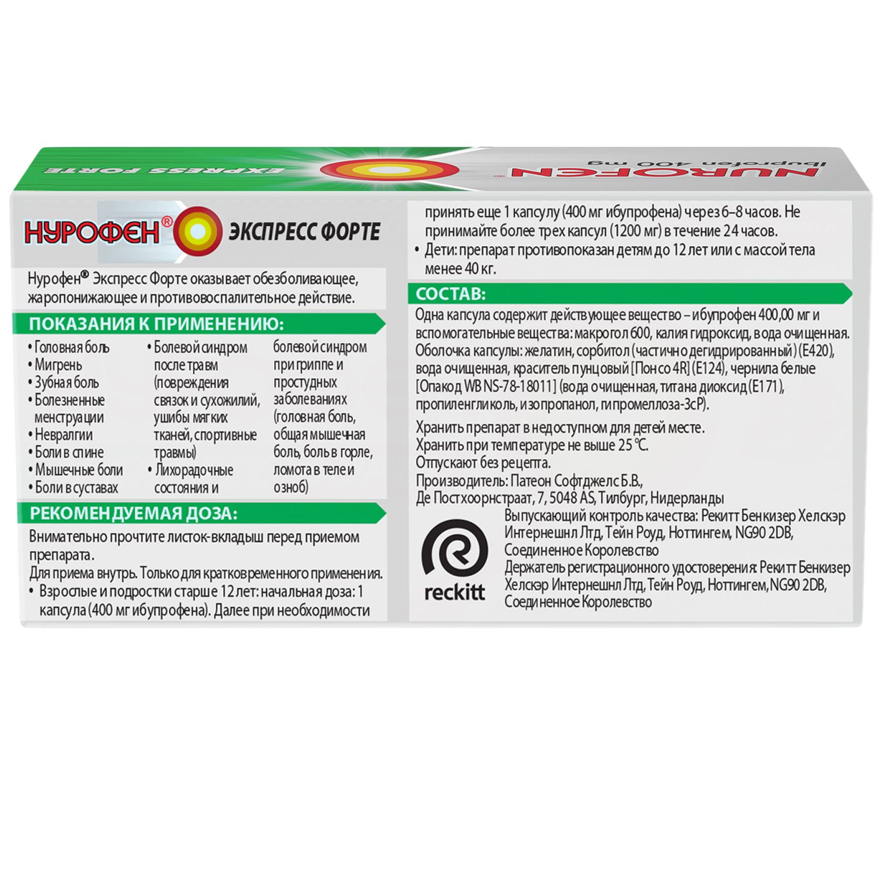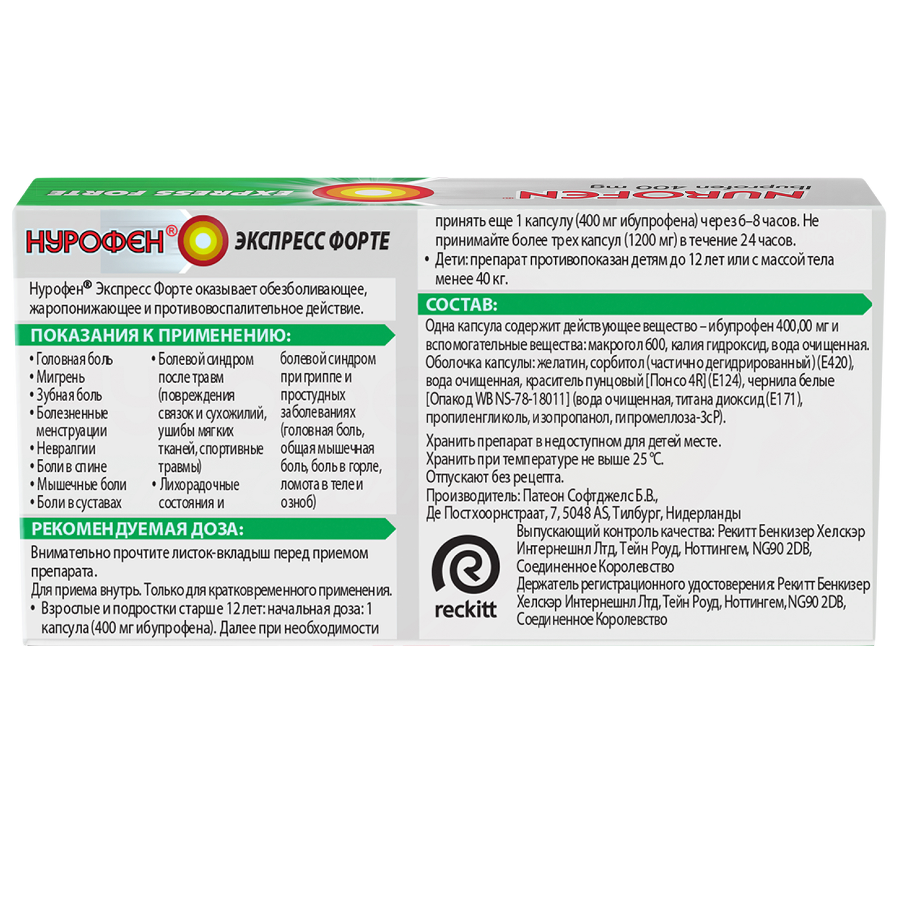 Купить  Нурофен Экспресс Форте капсулы 400мг №20