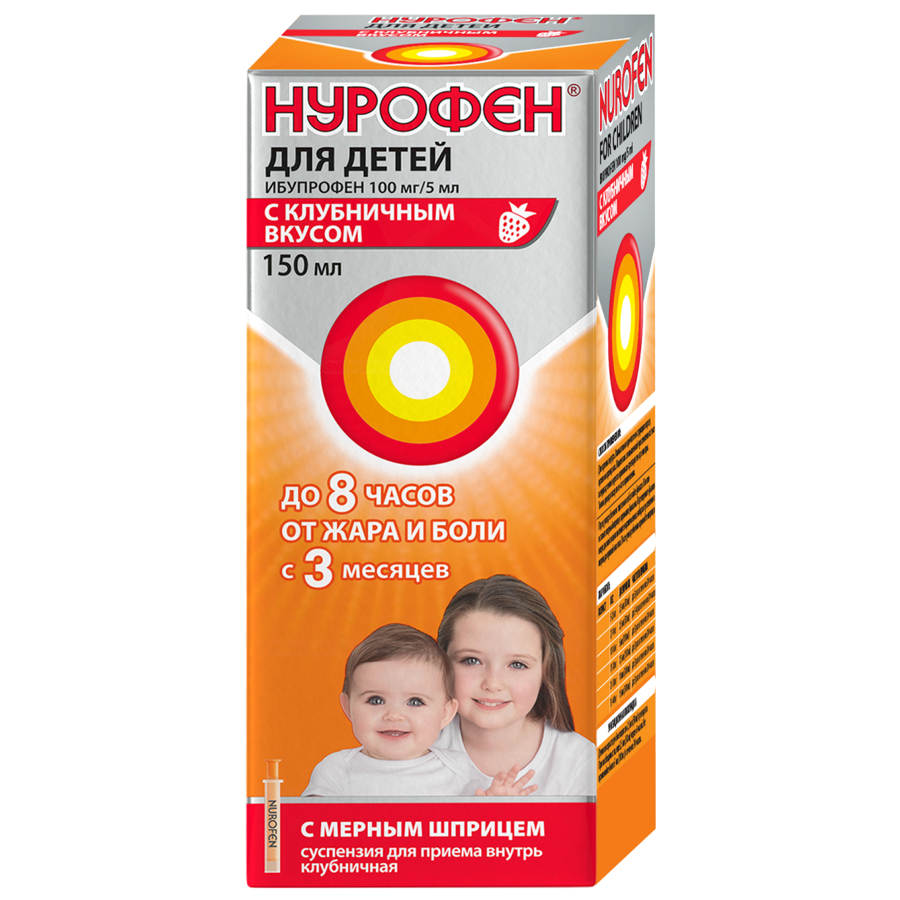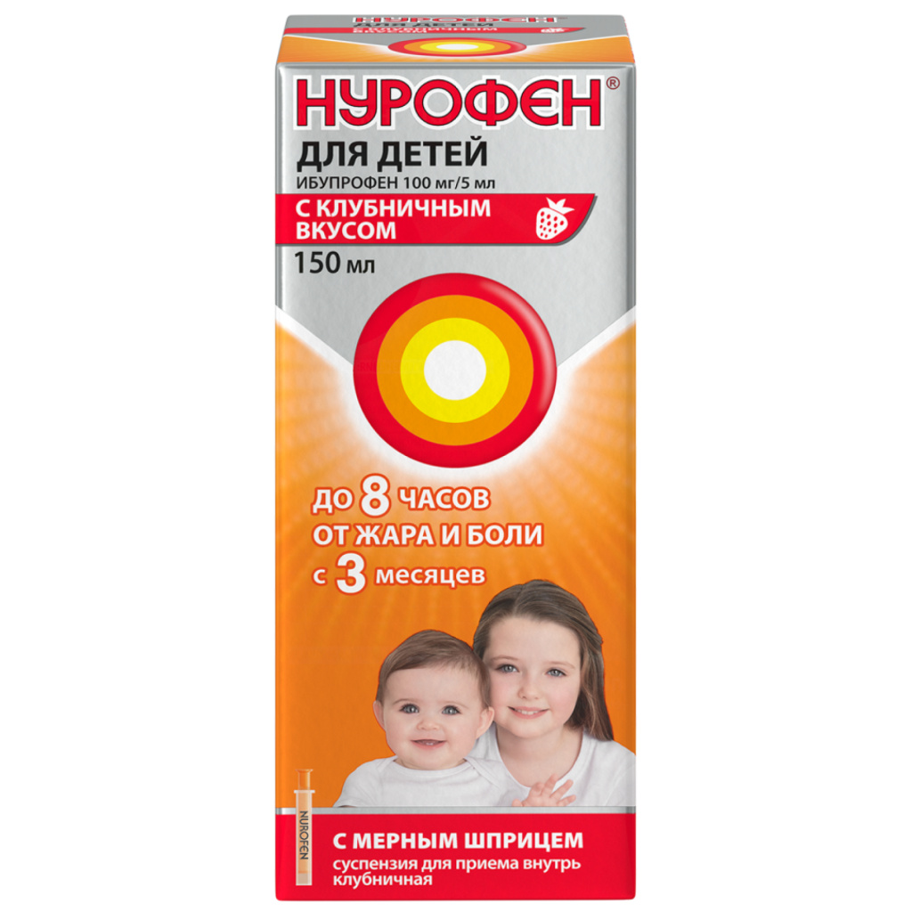 Нурофен суспензия для приема внутрь для детей с 3 месяцев 100мг/5мл 150мл клубника