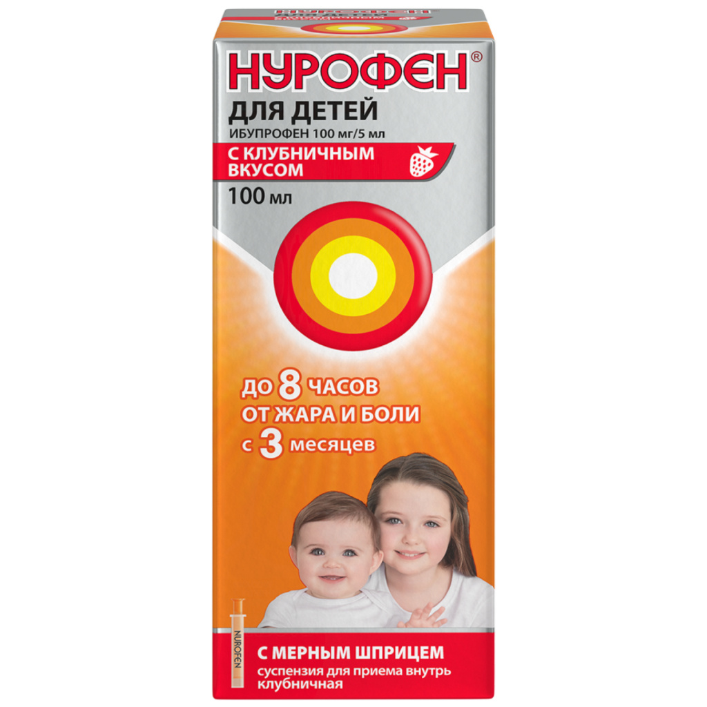 Нурофен суспензия для приема внутрь для детей с 3 месяцев 100мг/5мл 100мл клубника