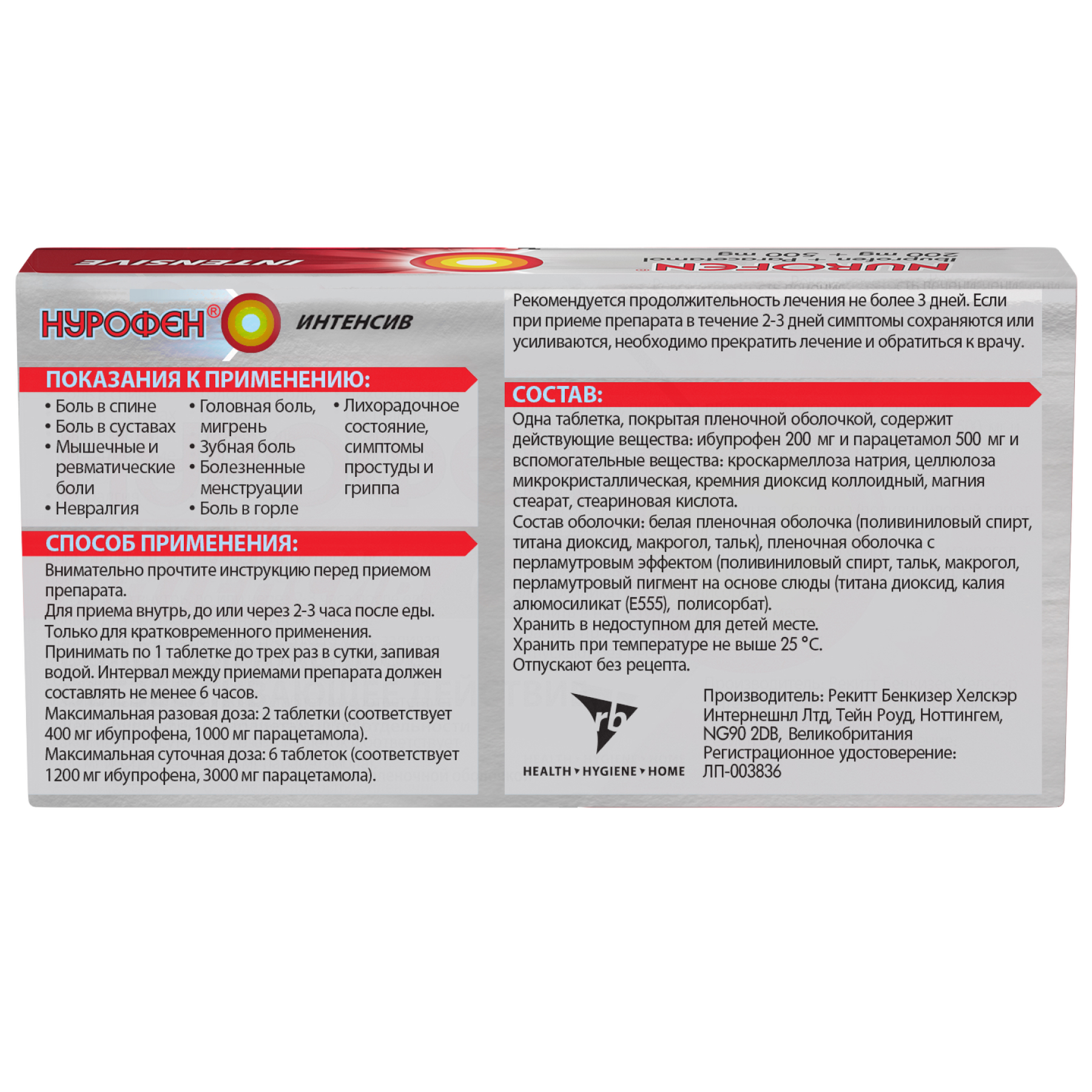 Нурофен Интенсив таблетки покрытые пленочной оболочкой 200 мг+500 мг №12