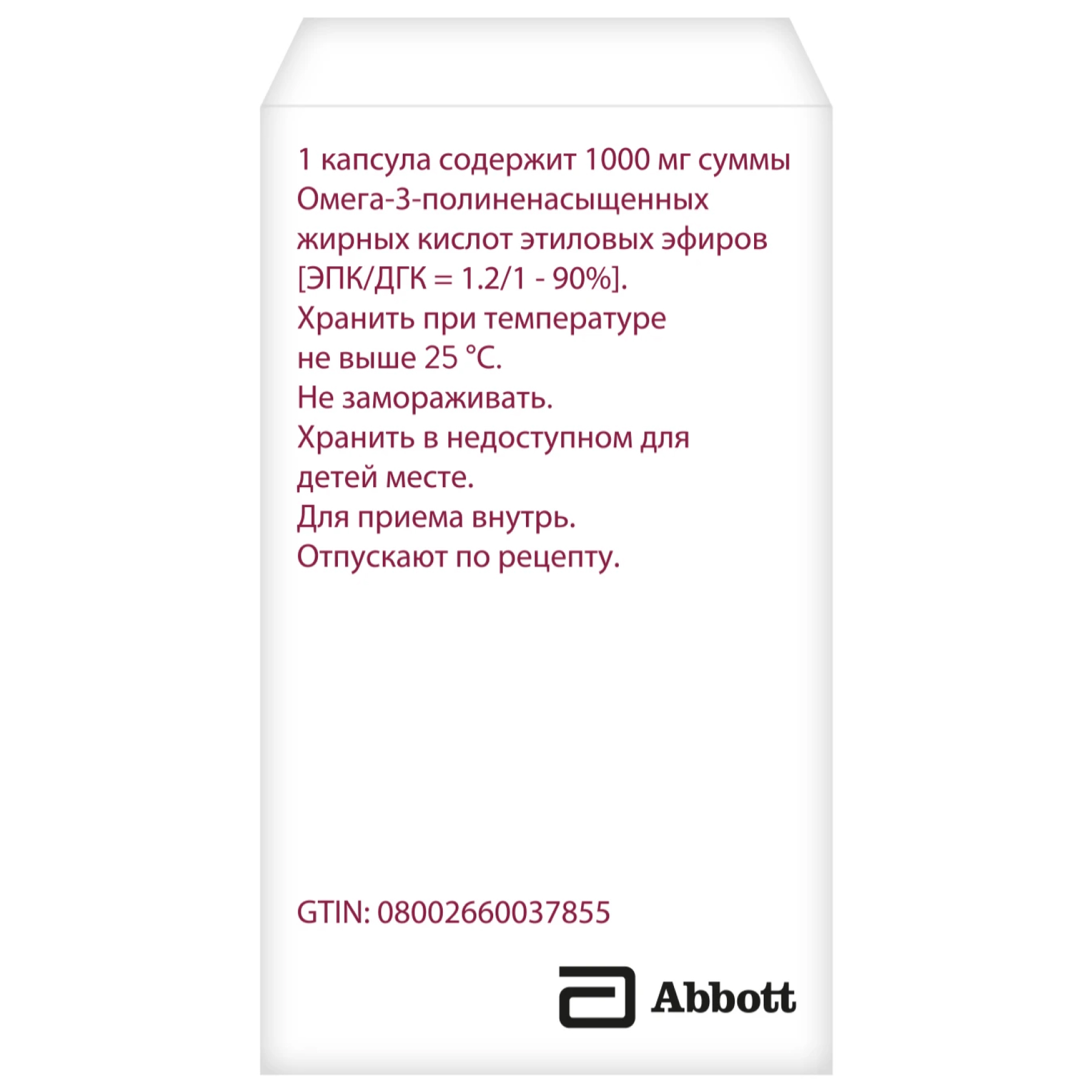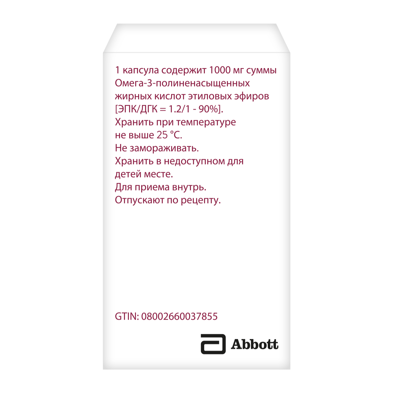 - этиловый эфир эйкозапентаеновой кислоты (ЭПК) 46% и этиловый эфир докозагексаеновой кислоты (ДГК) 38%.