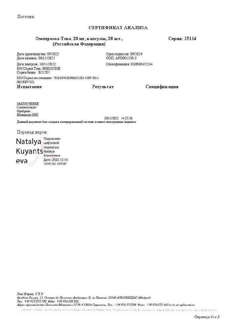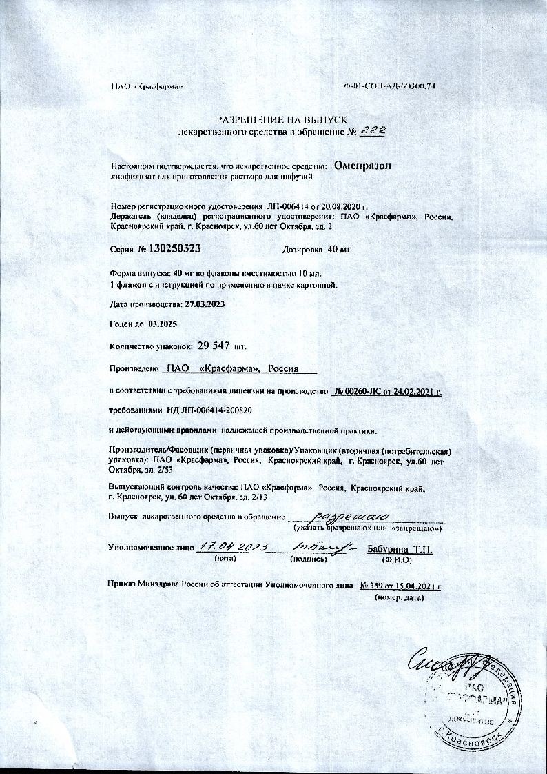 Биотрансформация происходит в печеночных структурах с образованием гидроксиомепразола, сульфидных и сульфоновых производных. Метаболиты фармакологически неактивны. Неизмененное и преобразовавшееся активное вещество выводится органами мочевыделения. В небольшом количестве оно покидается организм с каловыми массами в составе желчи.