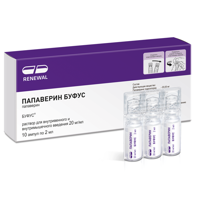Дополнительные вещества способствуют быстрому высвобождению папаверина гидрохлорида из основы таблеток и его наиболее полному проникновению в системный кровоток. Вторичная упаковка всех лекарственных форм — картонная коробка с вложенной внутрь инструкцией по применению.