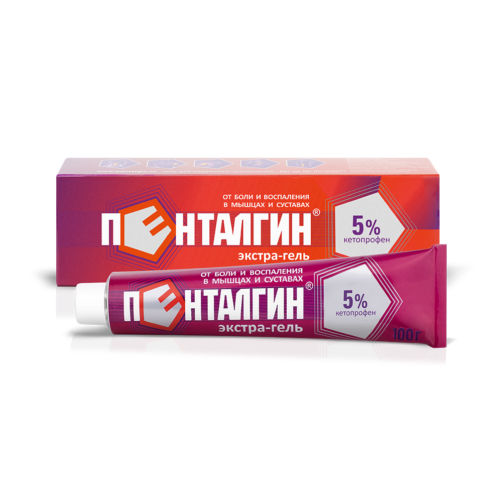 Терапевтическая линейка Пенталгин от отечественного производителя Фармстандарт-Лексредства состоит из таблеток и экстра-геля. Последний прозрачный, с насыщенным желтым или красноватым оттенком, желеобразной консистенцией, слабой опалесценцией и приятным запахом эфирных растительных масел. Экстра-гель расфасован в алюминиевые тубы с навинчивающимся колпачком. Активный ингредиент наружного средства — кетопрофен, представляющий клинико-фармакологическую группу нестероидных противовоспалительных препаратов. Его действие усилено добавлением эфирного масла мяты перечной, настойки стручкового перца, камфоры, этилового спирта, диметилсульфоксида.