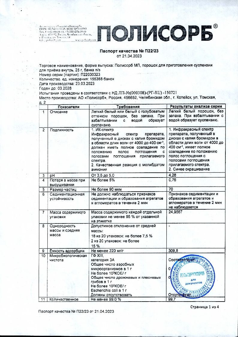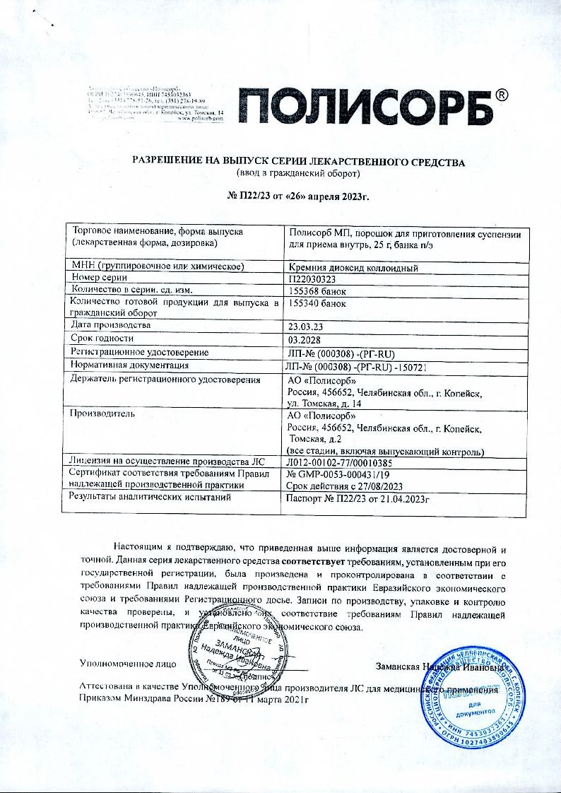 Главный и единственный компонент Polisorb – коллоидная форма диоксида кремния.