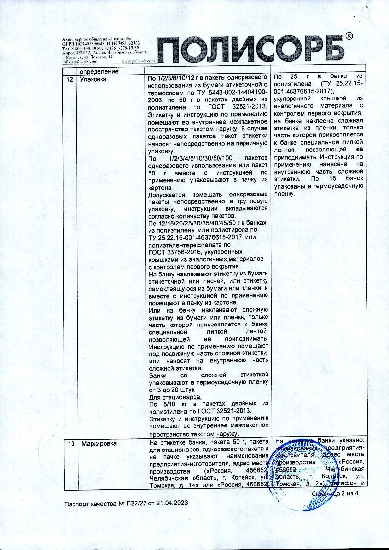 Выпускается исключительно в виде белого порошка. В норме допускается легкий голубоватый оттенок. В аптечных сетях он продается в пакетиках для одноразового использования или в пластиковых банках. Минимальное количество препарата в банках – 12 г, максимальное – 50 г (расфасовка по 12, 15, 20, 25, 30, 35, 40, 45, 50 г). Пакетики могут быть одинарными. В них содержится 1, 2, 3, 6, 10 или 12 г порошка. В упаковке может быть 1, 2, 3, 4, 5, 10, 30, 50 или 100 шт. Дозу в 50 г упаковывают в двойные полиэтиленовые пакеты и в картонную коробку. Такое разнообразие позволяет выбрать оптимальное количество лекарства на весь предполагаемый курс лечения. От количества порошка и размера упаковки зависит цена Полисорба.