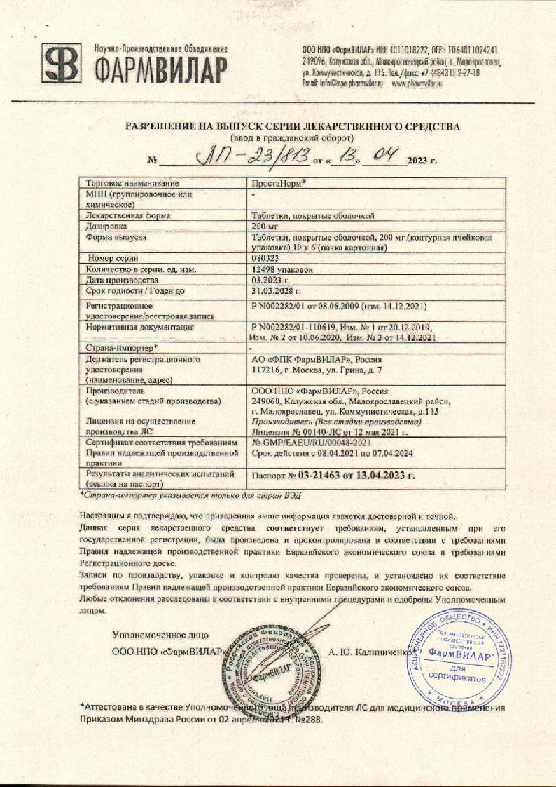 В Москве, а также других городах и субъектах РФ купить Простанорм можно без рецепта.