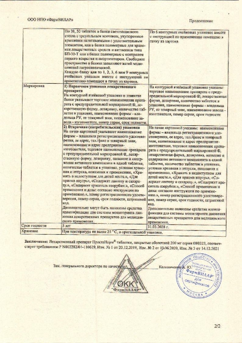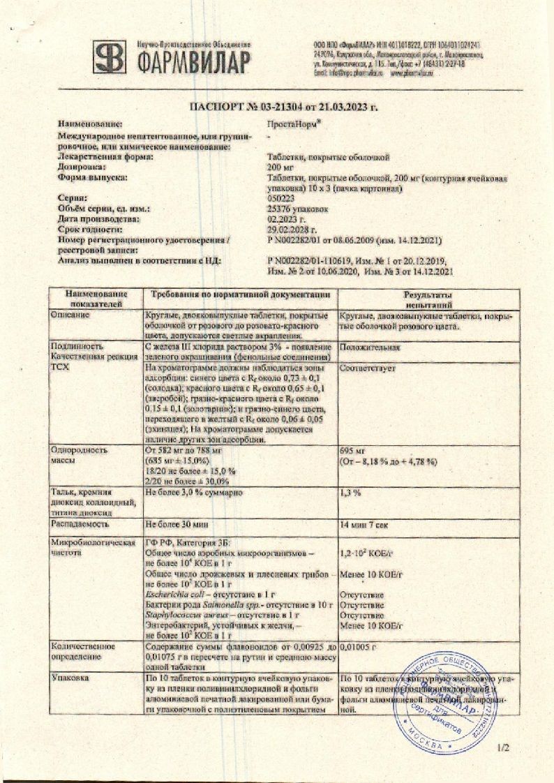 В основе таблеток — сухой экстракт Простанорм. В одной таблетке содержится 200 мг действующего вещества. Вспомогательные компоненты, используемые производителем: