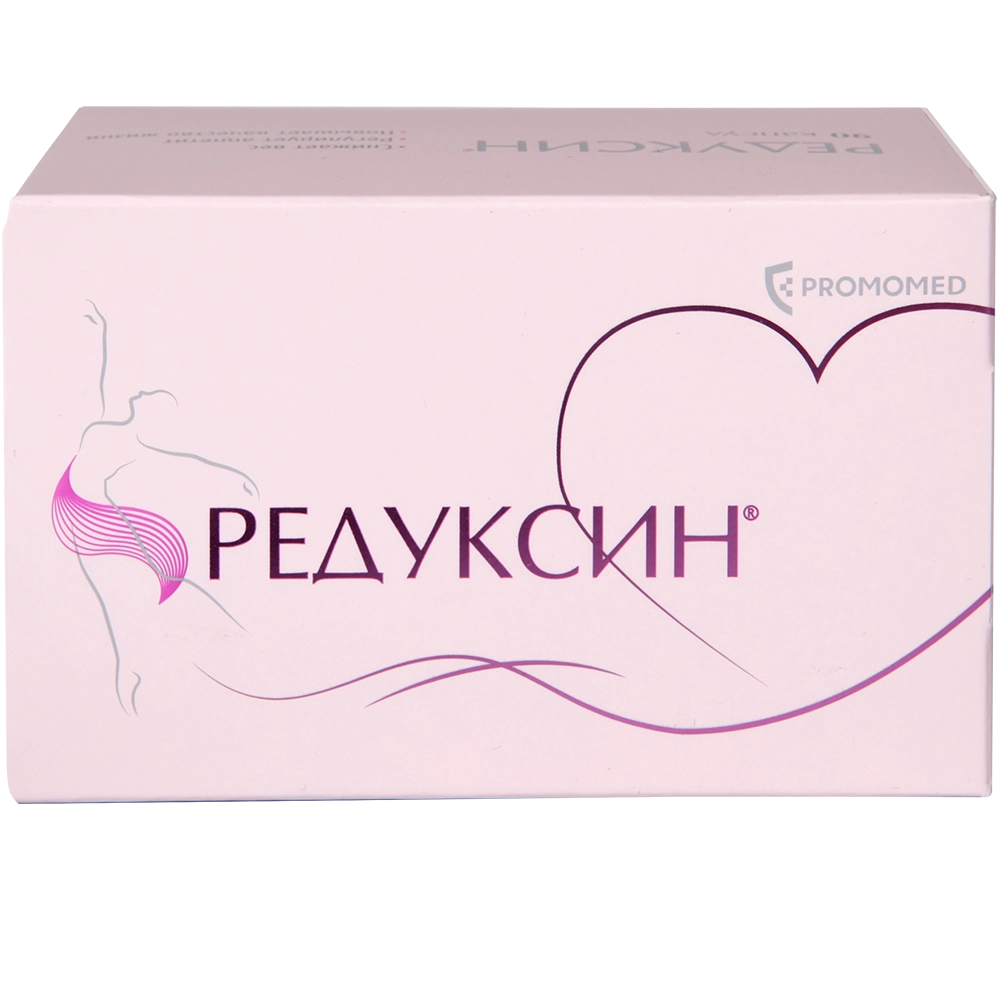 Редуксин выпускается в виде капсул голубого или синего оттенка. Внутри них — мелкая порошкообразная субстанция белого или желто-белого цвета. Капсулы оформлены в фольгированные блистеры по 10 штук, общее количество в пачке — 3, 6 или 9 блистеров.