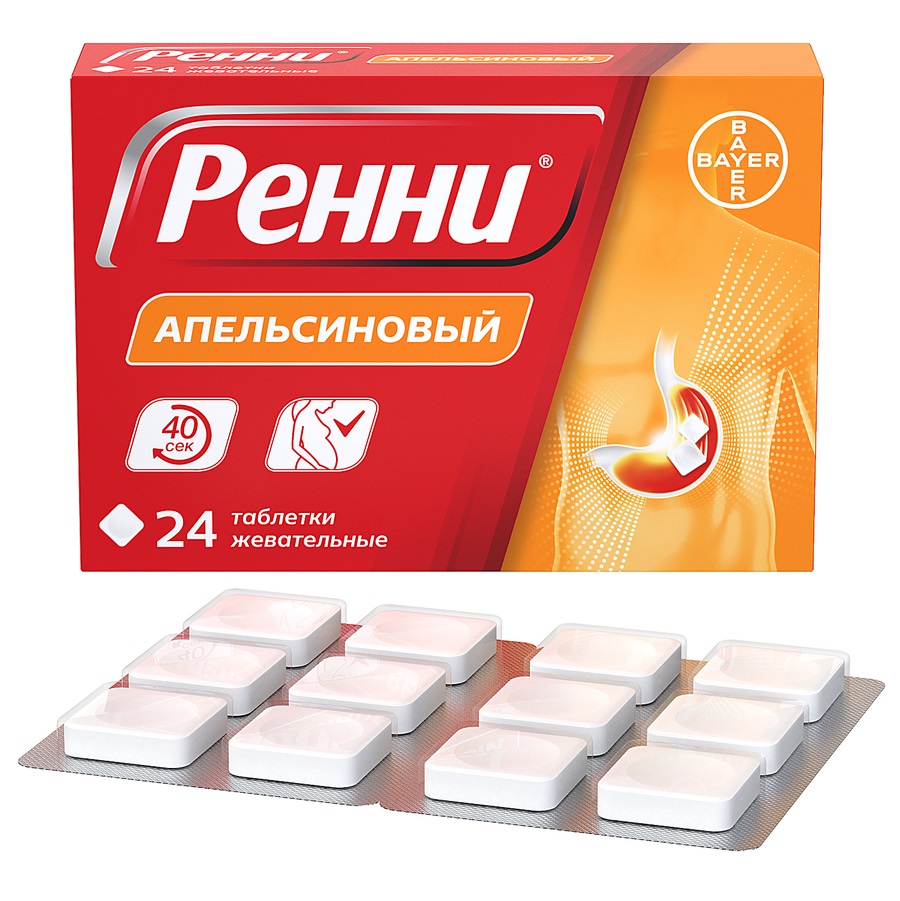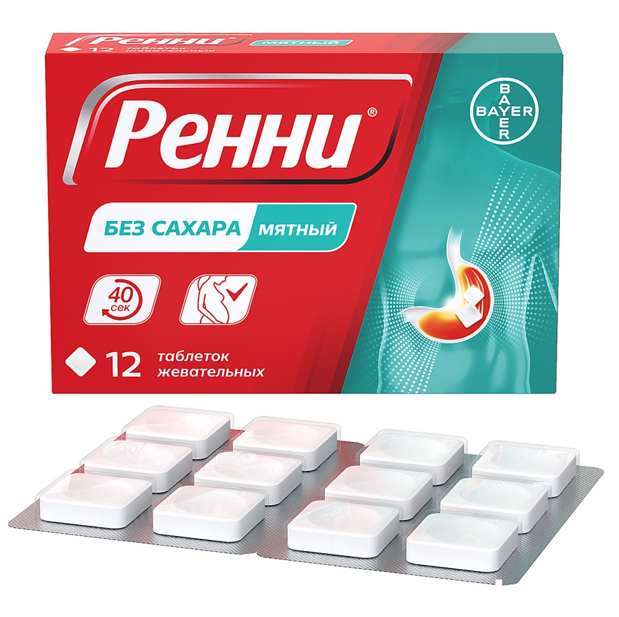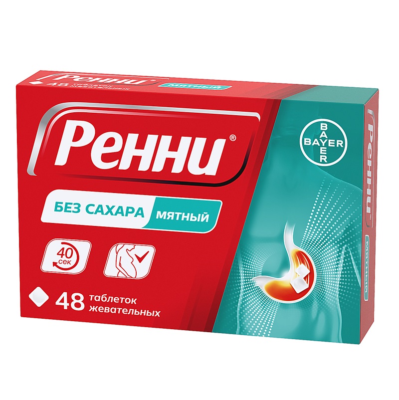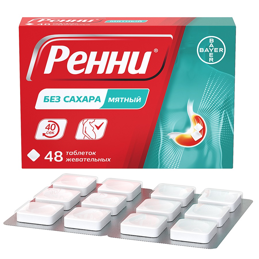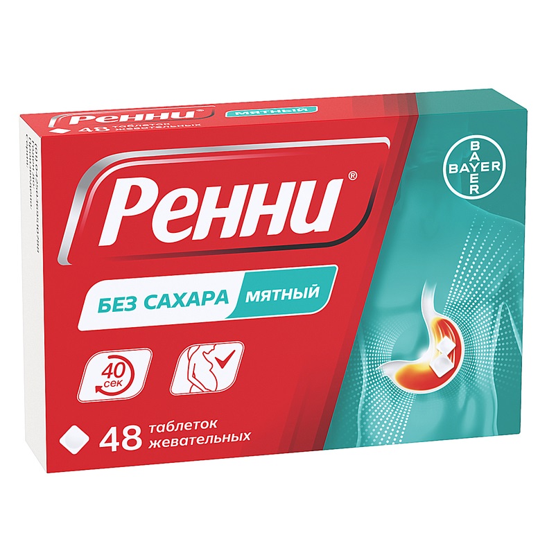 Системных побочных эффектов Ренни в клинической практике отмечено не было. Преимущественно при заранее не выявленной индивидуальной непереносимости одного из компонентов возможно развитие местных аллергических реакций. Их характерные симптомы — сыпь, зуд, болезненность, жжение, ангионевротический отек. Необходимо прекратить принимать Ренни и проконсультироваться с врачом. Он изменит режим дозирования или назначит более безопасный антацид.