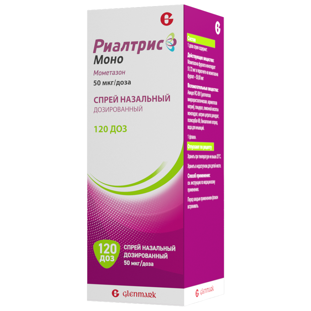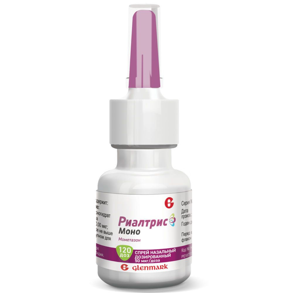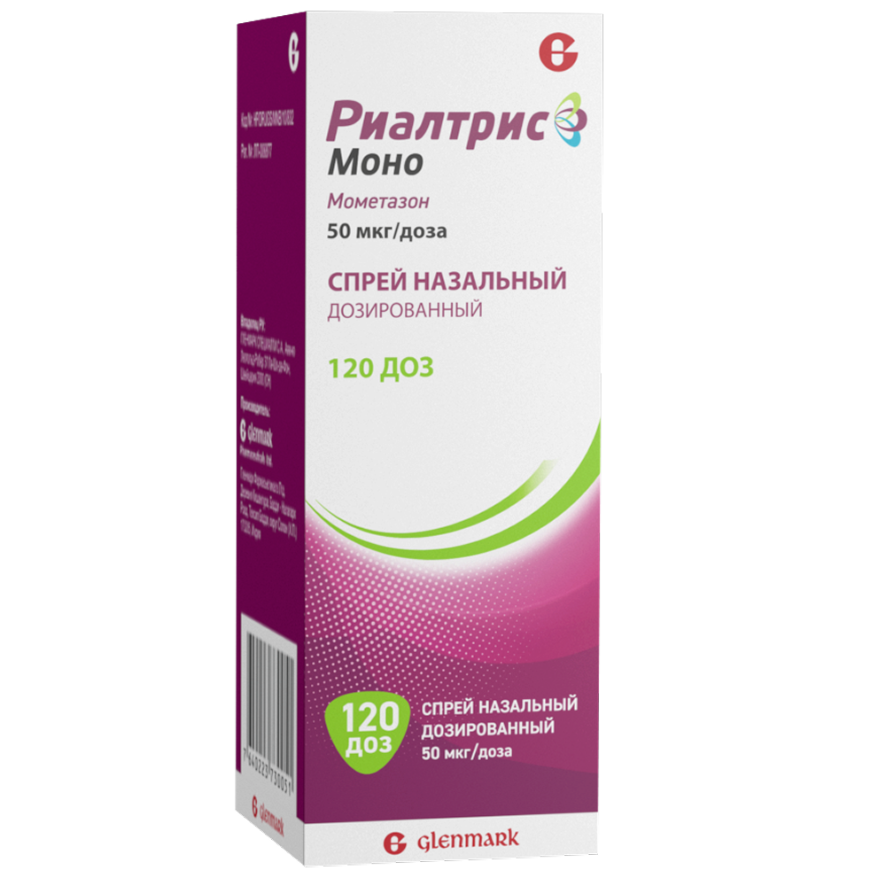 Доза Риалтриса моно стандартна – 2 впрыска в каждую ноздрю дважды в день.