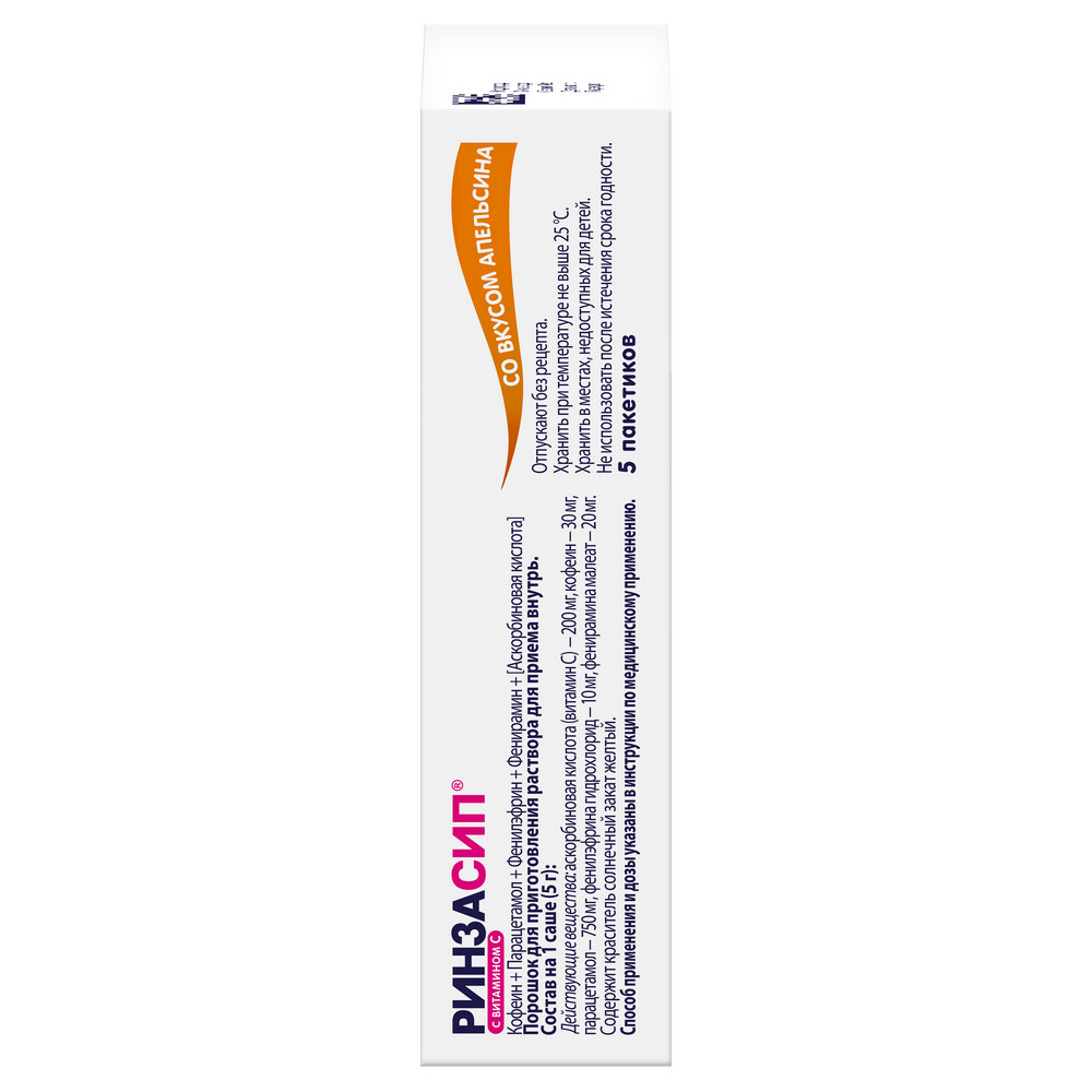 Длительность терапевтического курса — до устранения симптомов простуды, но не более пяти дней. Если в течение 1-2 суток состояние не становится лучше, то требуется помощь врача. Вместо Ринзасип им будет назначено лекарственное средство с другими действующими веществами.