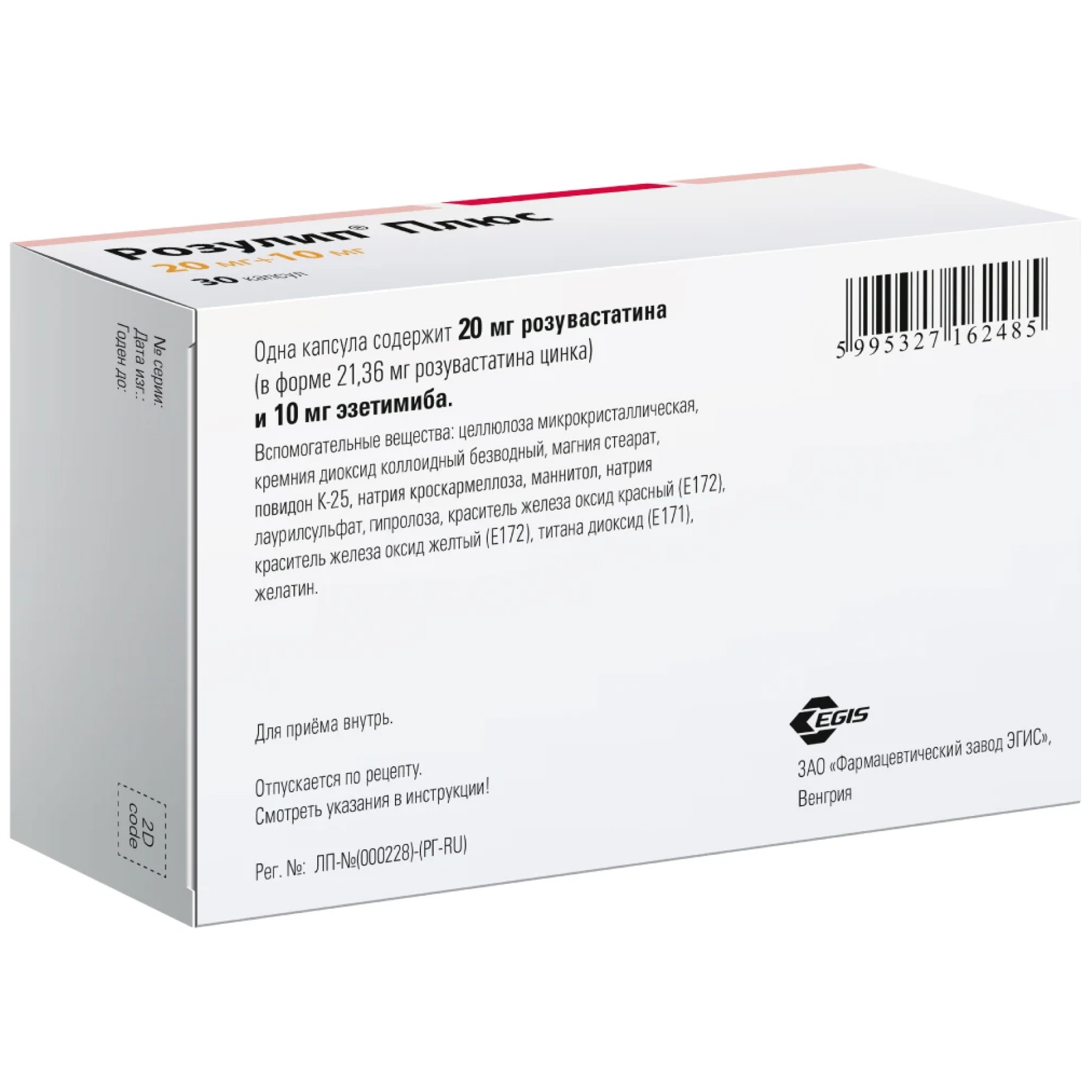 В Розулип Плюс кроме розувастатина присутствует второй активный компонент – эзетимиб. Поэтому Розулип+ и Розувастатин не являются аналогами и не могут заменить друг друга.