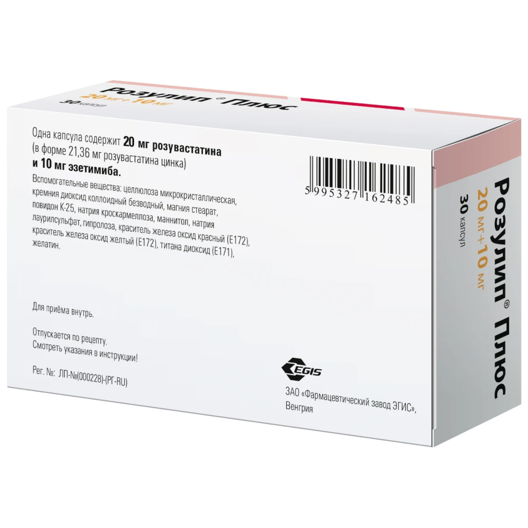 Фармакологические свойства Розулипа Плюс (10 10 или в другой дозировке) складываются из особенностей действия обоих активных веществ. Влияние розувастатина описано выше. В комбинированном препарате он ведет себя аналогично. О действии эзетимиба известно следующее: