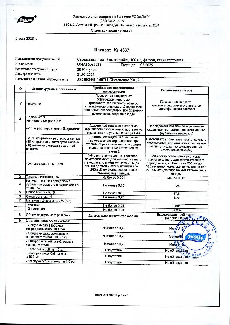 Срок годности — 2 года. Хранят растительное сырье в темном сухом месте при комнатной температуре, настой — в холодильнике в течение 2 дней. Дети не должны иметь доступа к сабельнику.