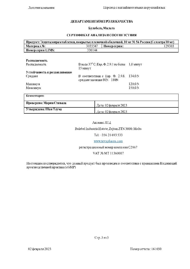 Селектра обладает выраженным антидепрессивным эффектом, который развивается приблизительно на четвертой неделе после начала курсового лечения. Помимо основного, препарат оказывает противотревожное, антифобическое и анальгетическое действие.