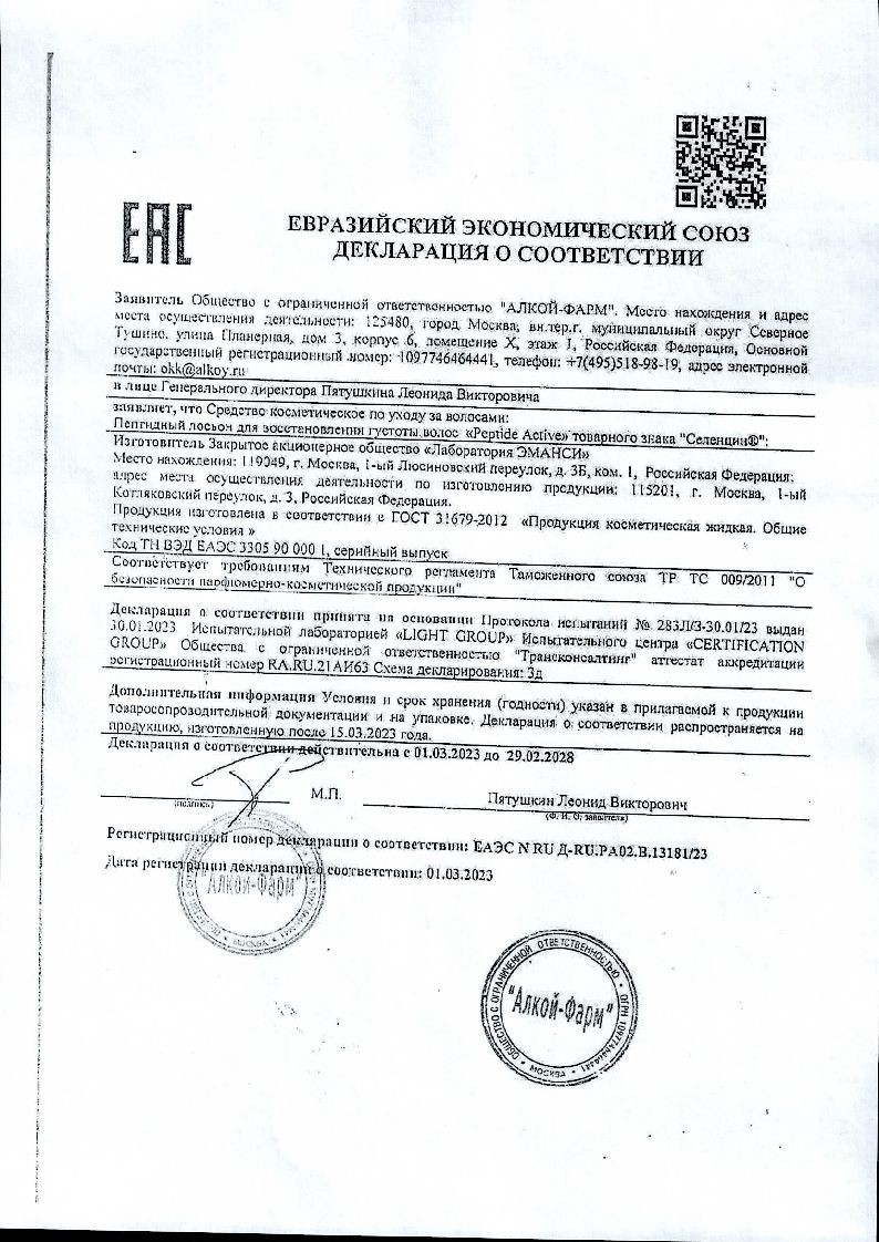Селенцин Пептид Актив шампунь 200мл пептидный укрепляющий
