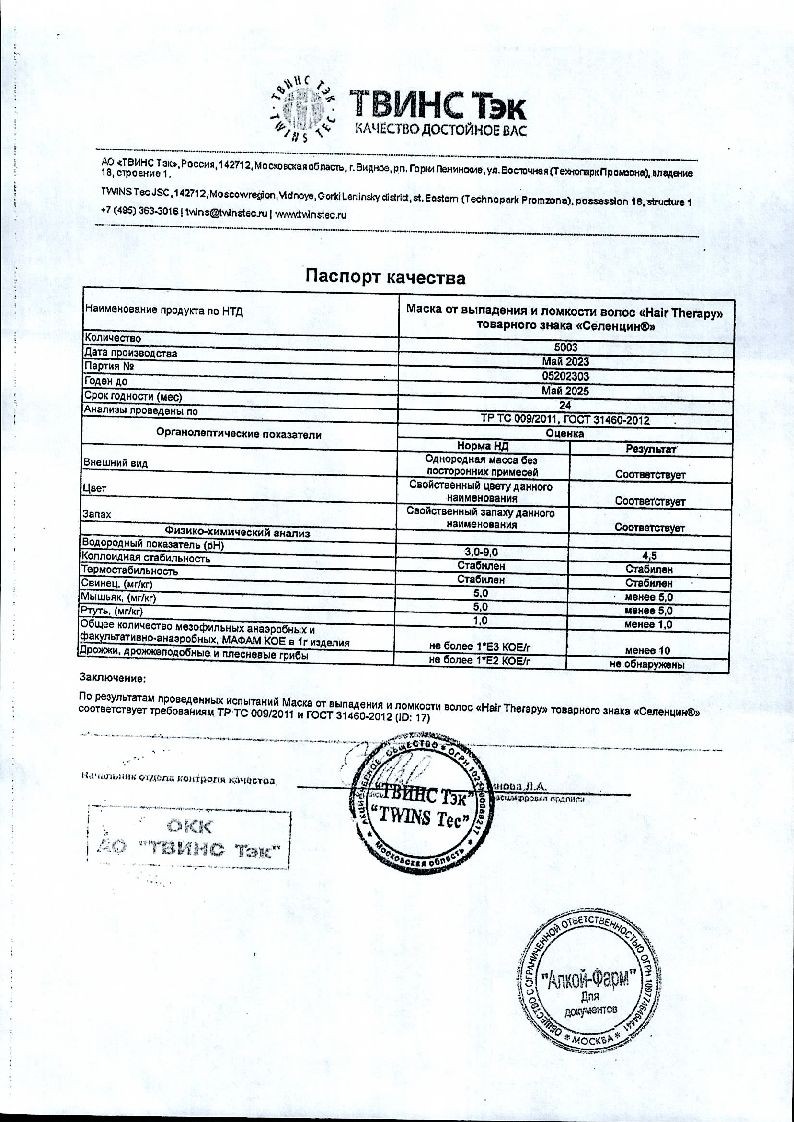 Селенцин Хаир терапи, маска интенс от вып и ломк волос 150мл